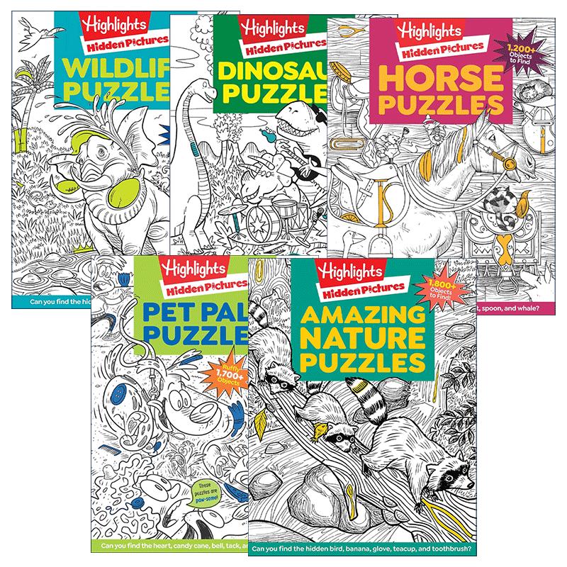 Pictures 寻找隐藏图片动物主题5册 进口英语原版 Highlights 书籍 英文版 Hidden 提高注意力 英文原版 亮点儿童益智游戏活动书