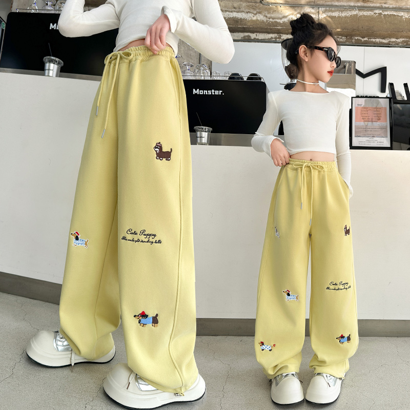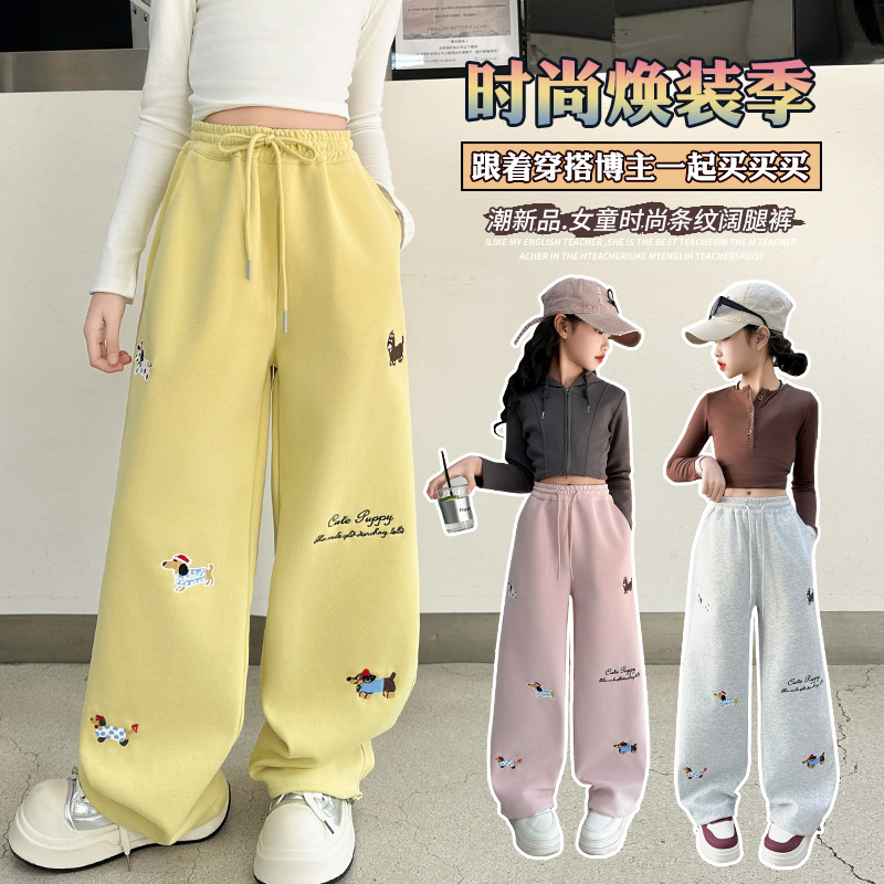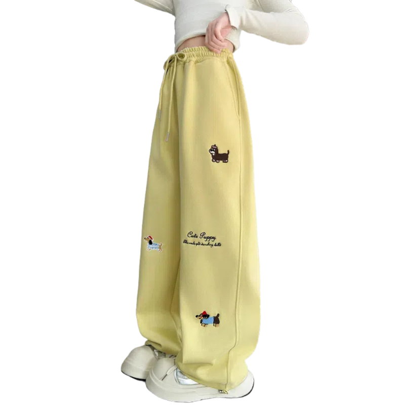 百搭直筒宽松运动裤 新款 子潮 女2025春秋季 自然涩可爱小狗休闲卫裤