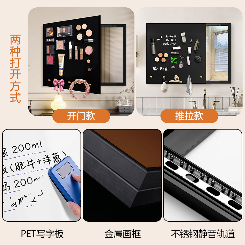 浴室化妆镜隐藏式 隐形穿衣镜 推拉镜梳妆台镜子卧室试衣镜壁挂式