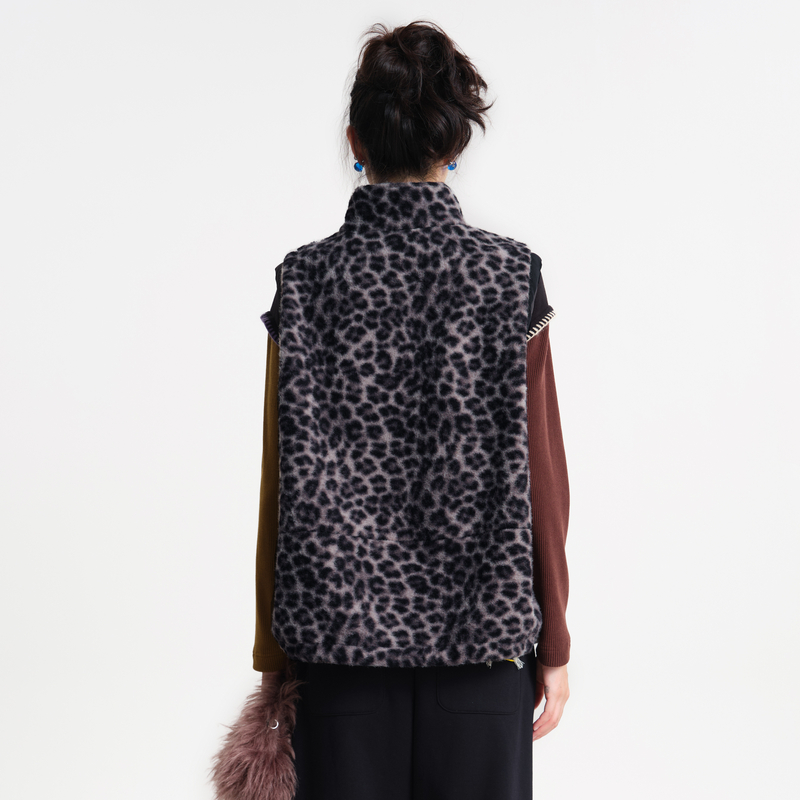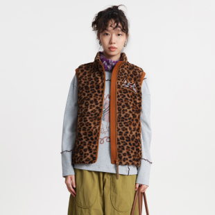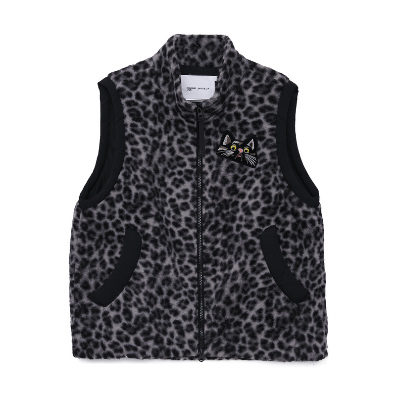 马夹女 .FUN系列立领猫咪绣花口袋豹纹短款 MOVEUP幻走2025冬季 新款
