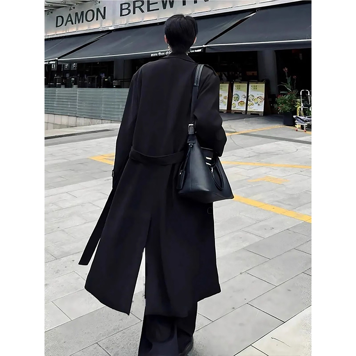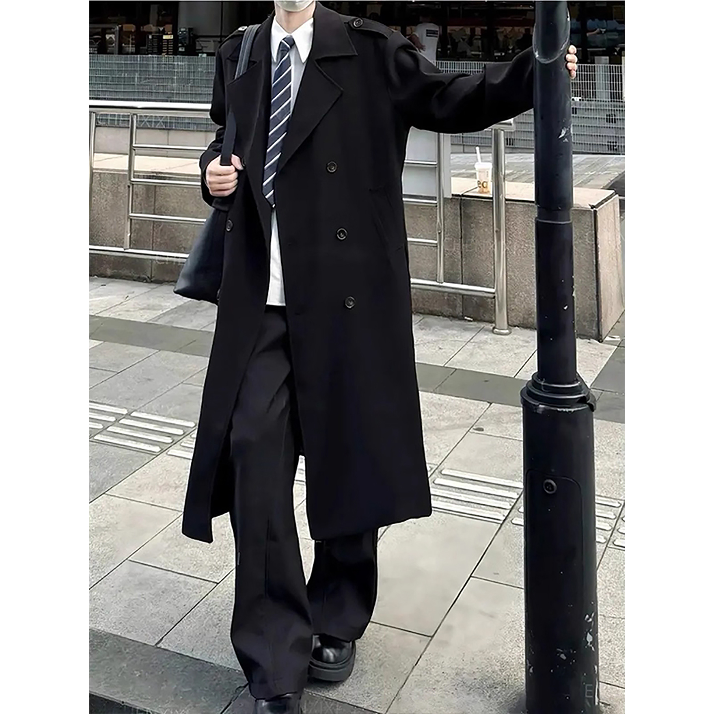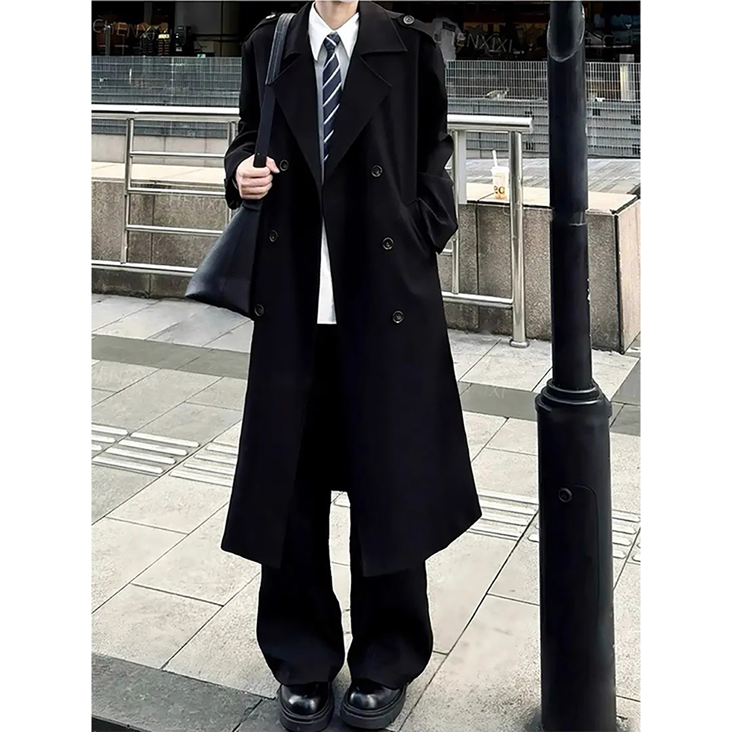 韩版 长款 呢子加厚风衣外套 2025春秋季 V37黑色高级感毛呢大衣男款