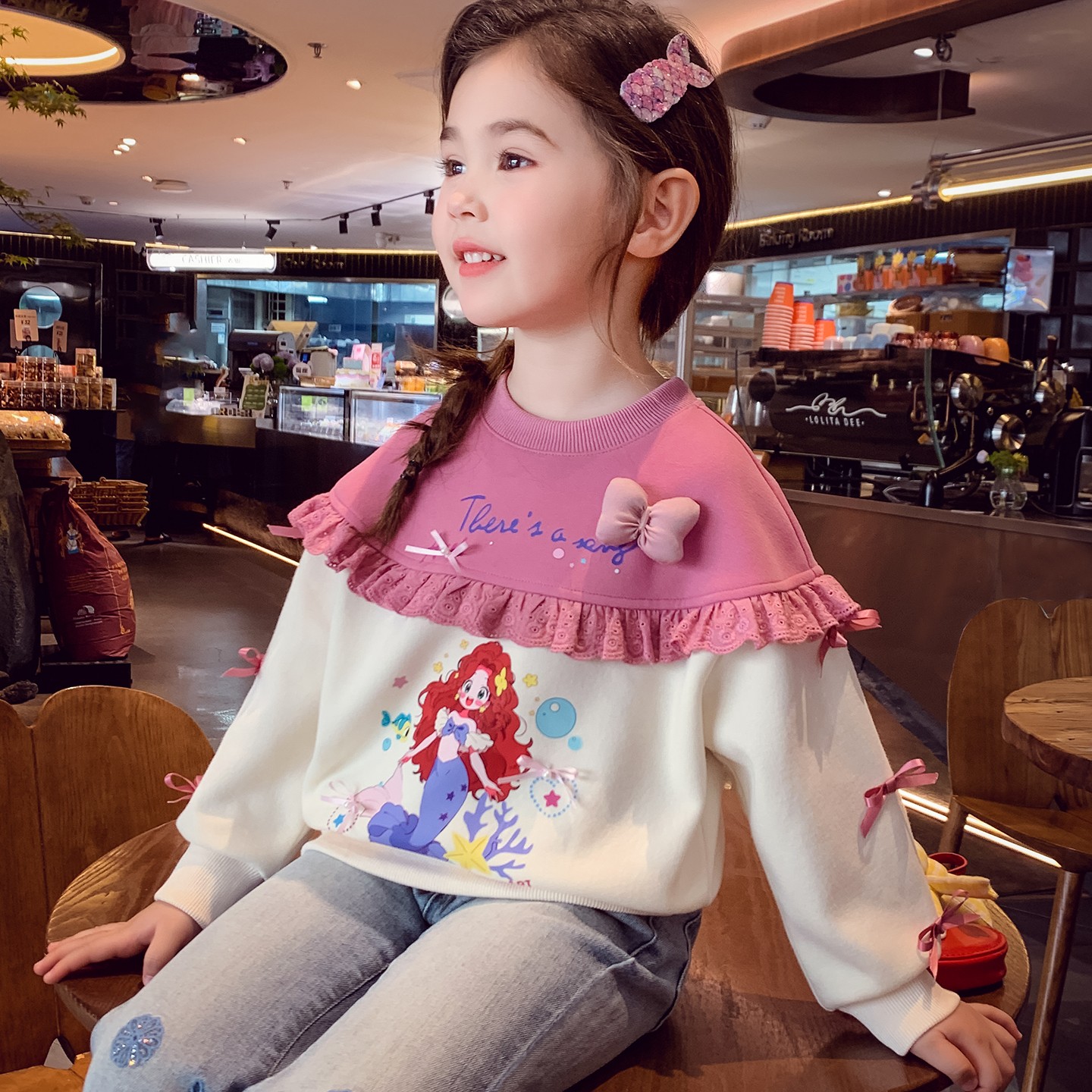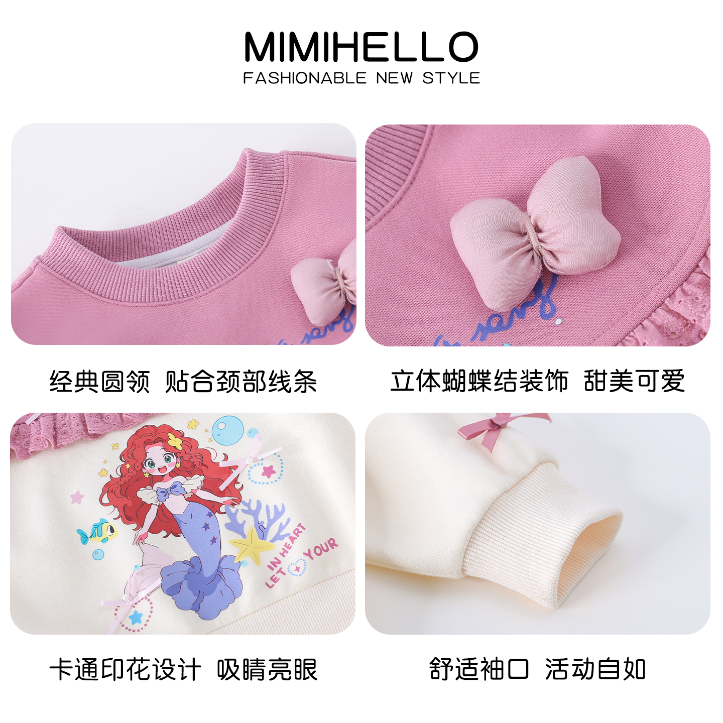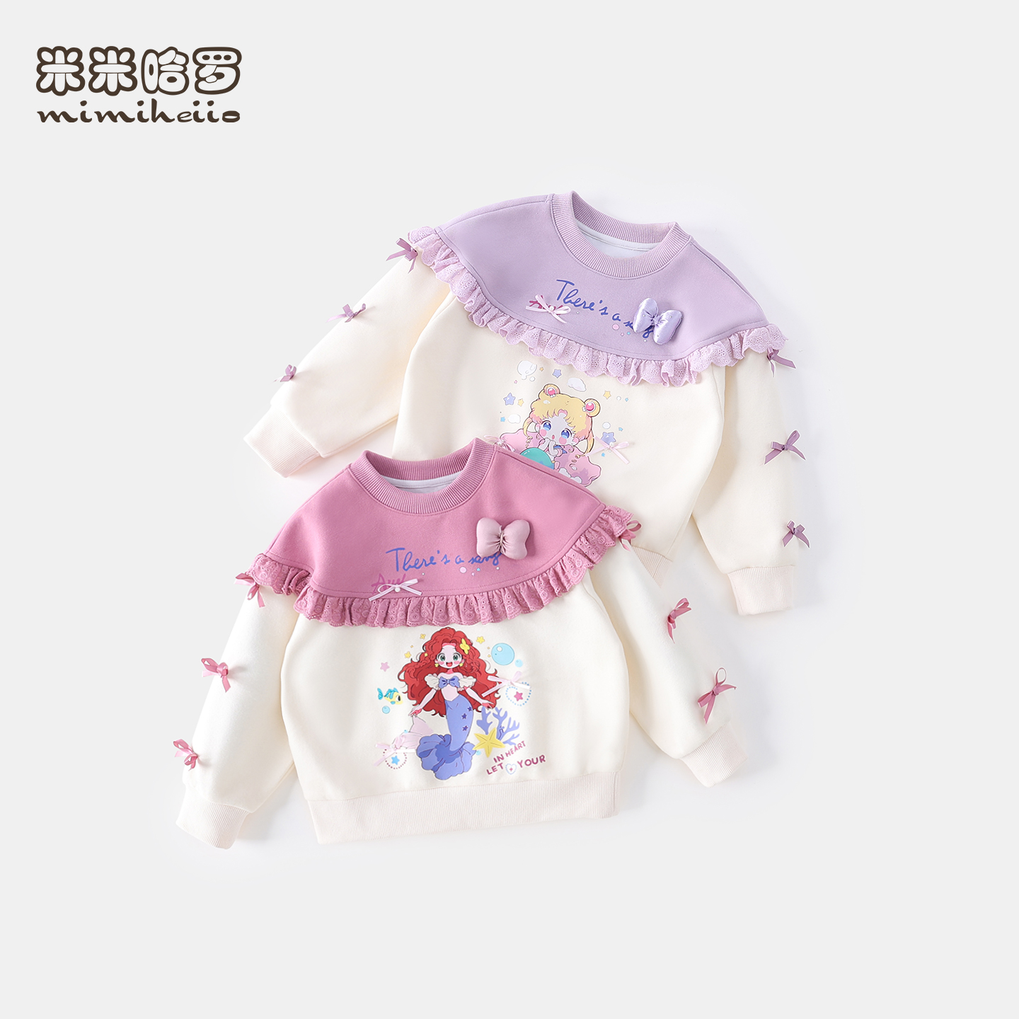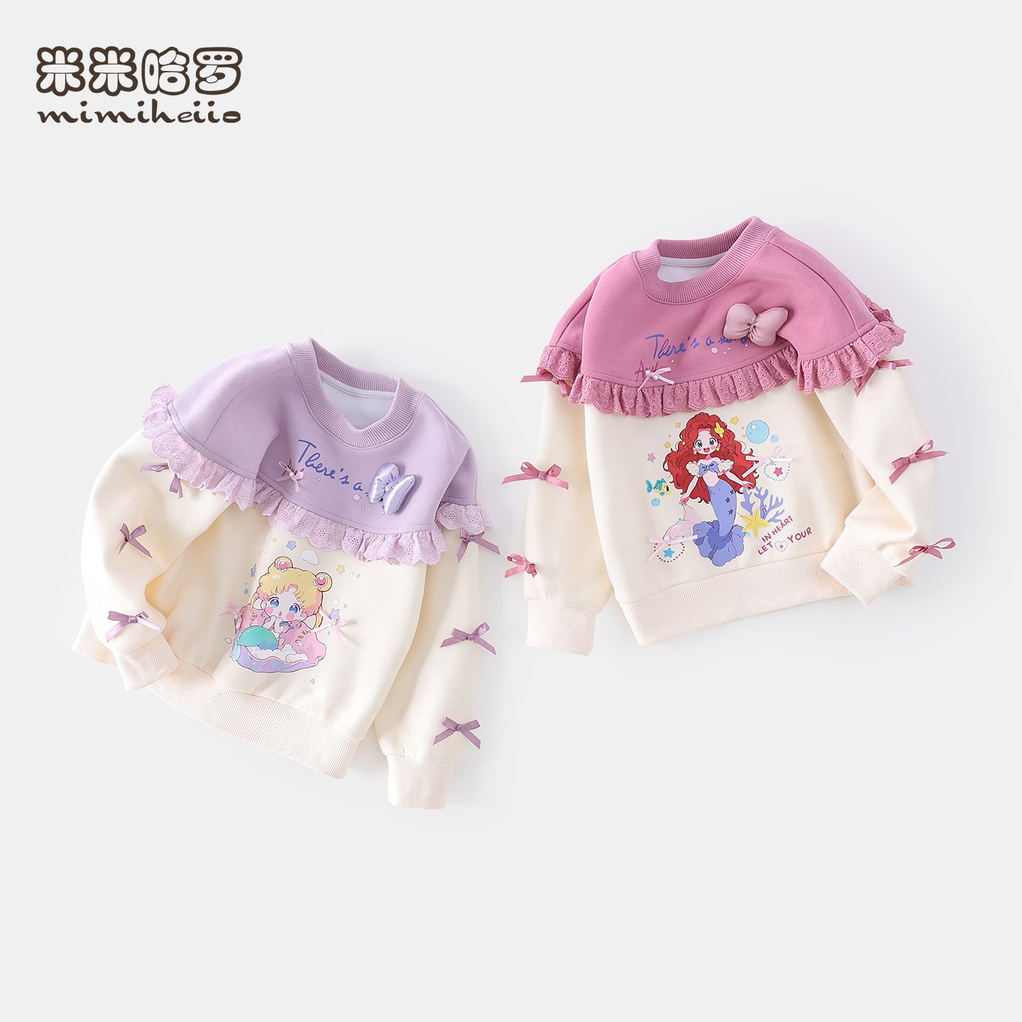 上衣女孩套头衫 女童卫衣秋装 卡通花边蝴蝶结长袖 儿童韩版 2025新款