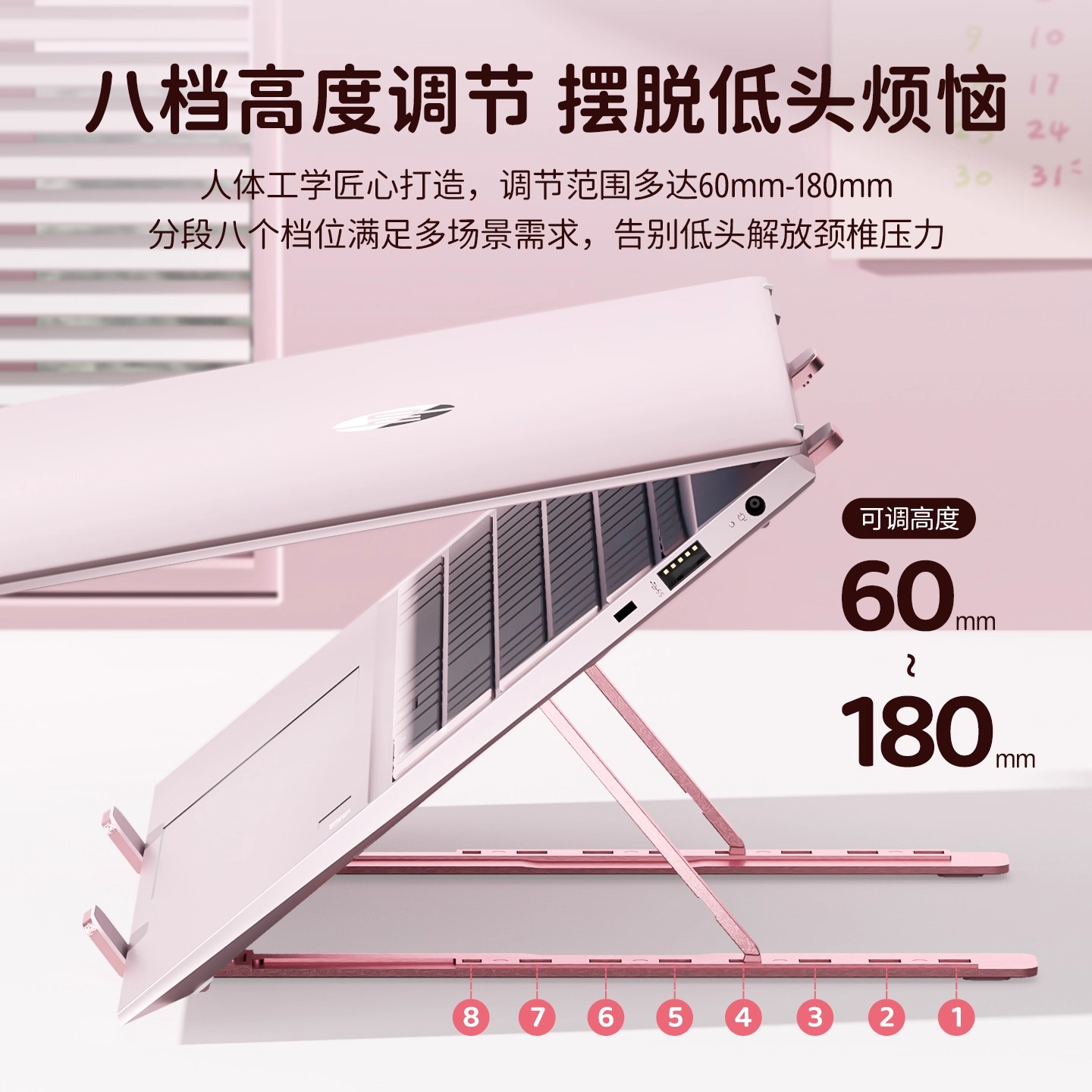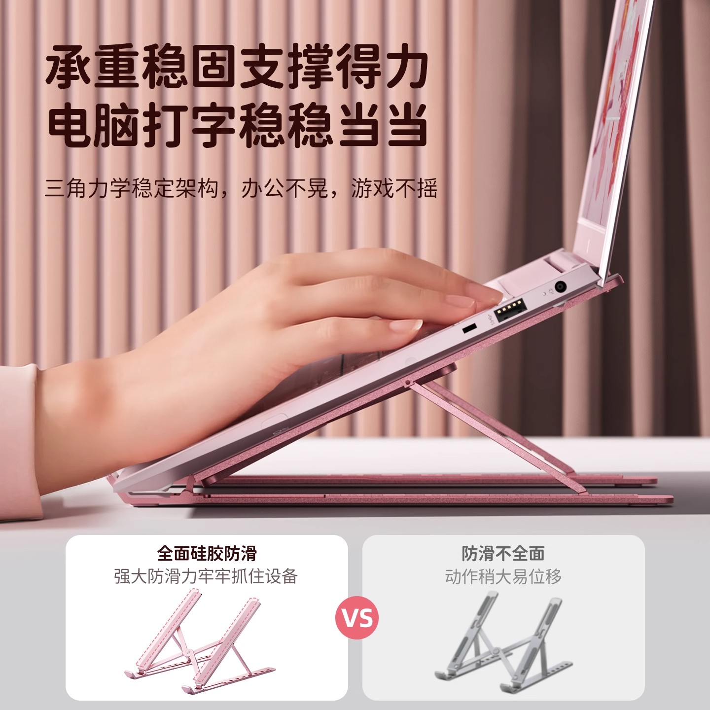笔记本电脑支架女生可爱折叠便携托架铝合金底座硅胶防滑桌面增高散热适用华为苹果笔记本通用散热架办公学生
