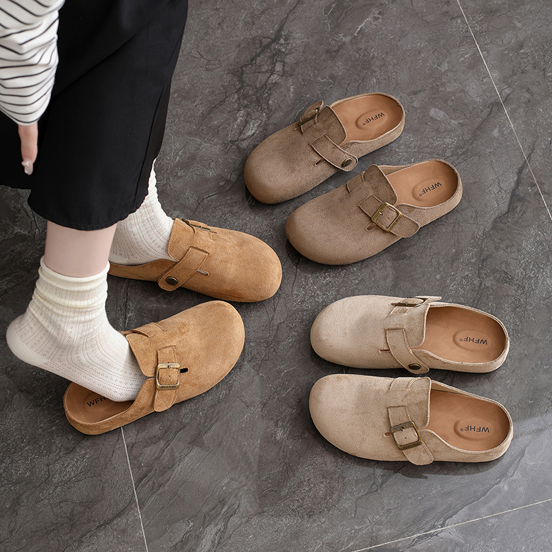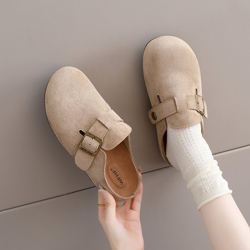 一脚蹬懒人孕妇半拖鞋 赵露思同款 新款 女外穿2025秋季 真皮勃肯拖鞋