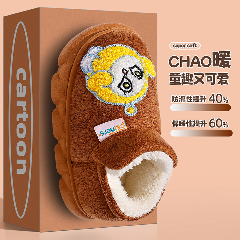 加绒加厚 女孩可爱猫咪包跟室内居家棉鞋 babycrayon儿童棉拖鞋 冬季