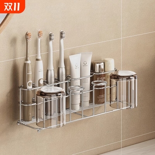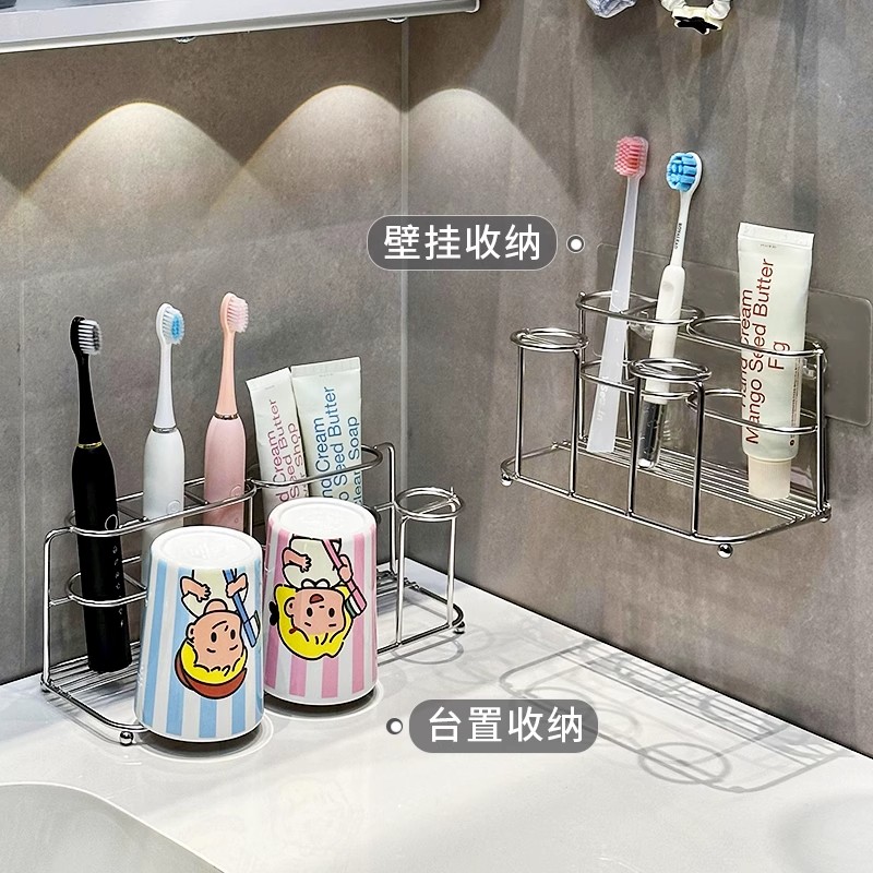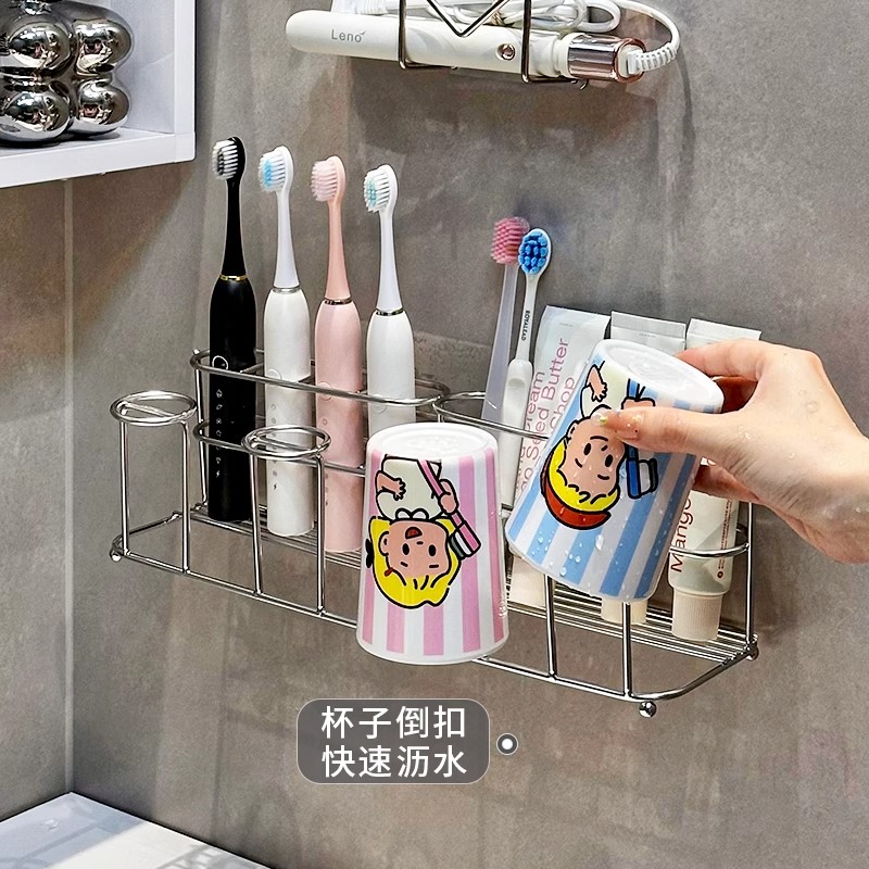 304不锈钢漱口杯架壁挂式 电动牙刷牙膏置物架免打孔倒挂墙沥水架