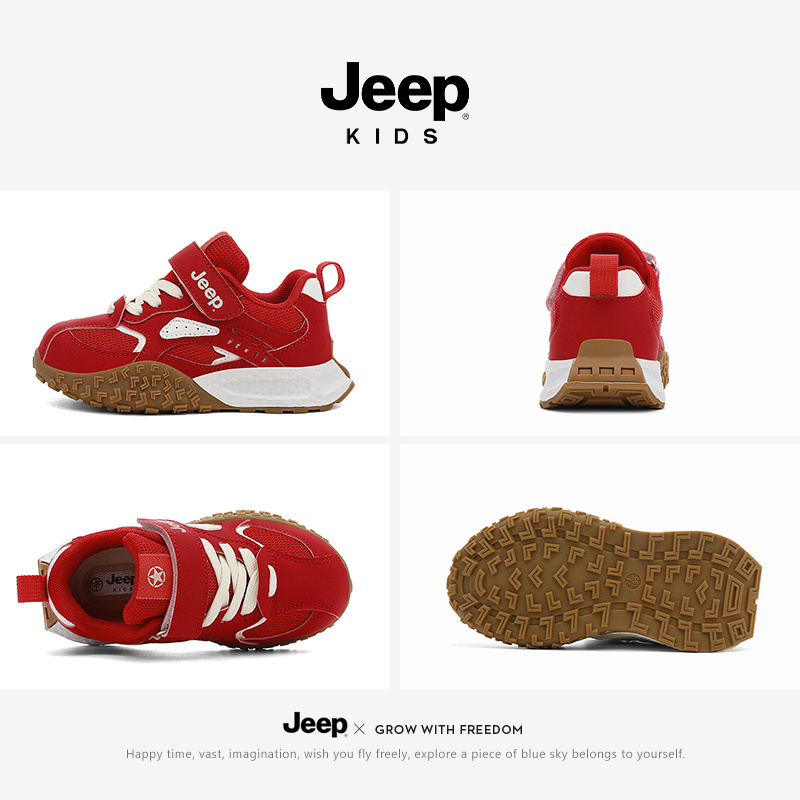 中大童轻便低帮红色老爹鞋 jeep女童鞋 儿童跑步防滑运动鞋 时尚 秋季