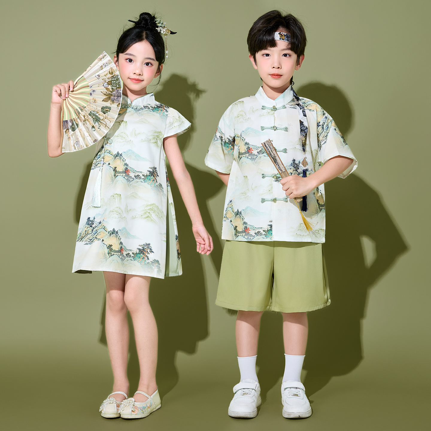 儿童啦啦队演出服装 中国风合唱班服表演 幼儿园小学生运动会开幕式