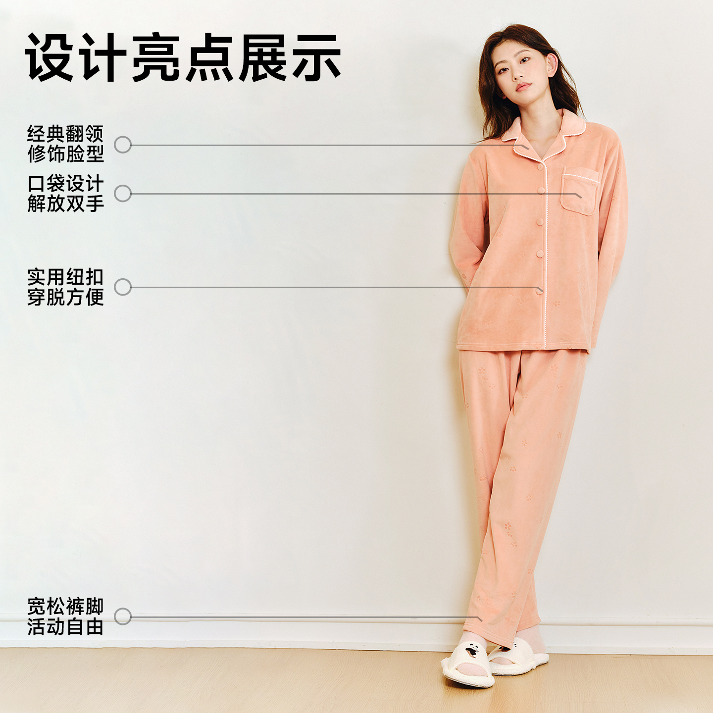 套装 海岛绒家居服春秋款 加绒加厚珊瑚绒保暖时尚 轩靓睡衣女秋冬季