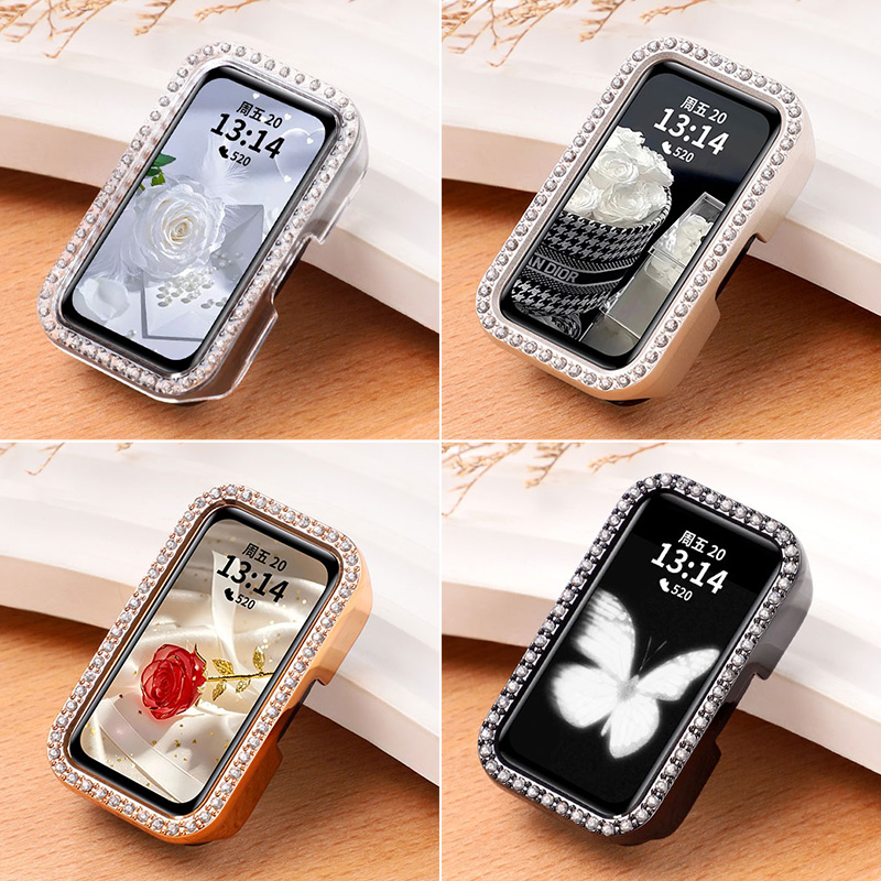 表盘保护套 仿钻边框pc半包抗摔时尚 卡睿适用华为手环10镶钻保护壳手环9手表壳新款 带钻band8智能运动手表女款