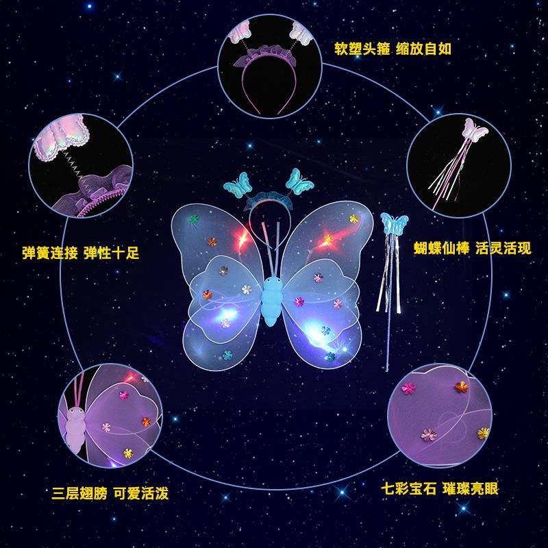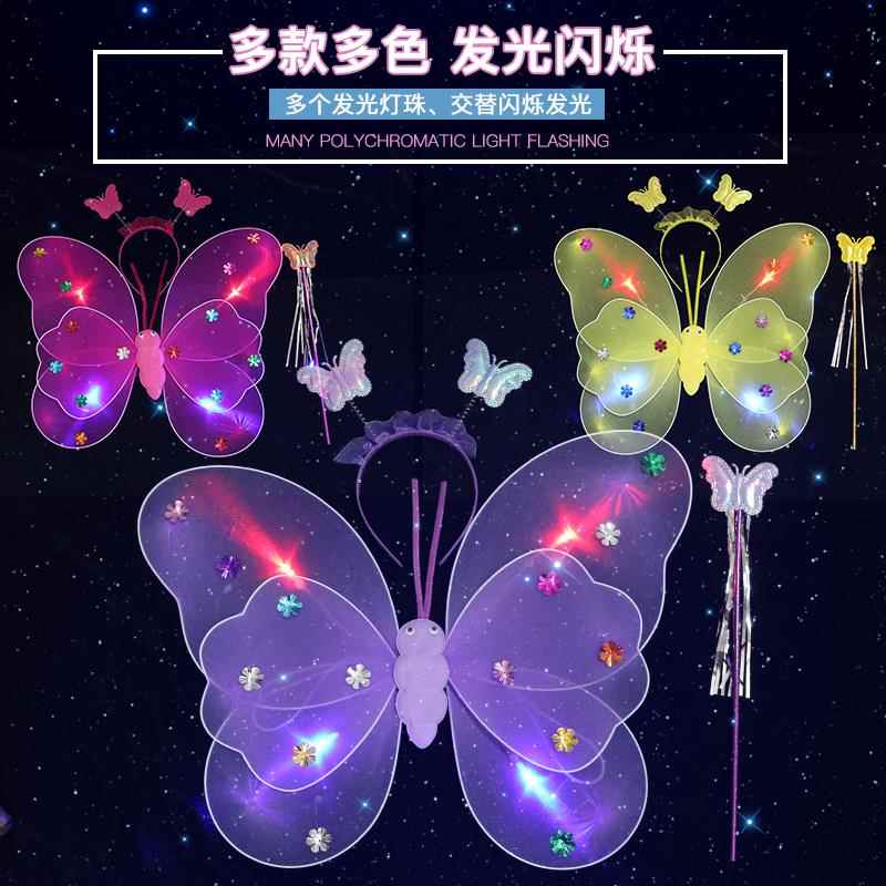 儿童发光蝴蝶翅膀背饰小女孩闪光玩具奇妙仙子魔法棒花仙子三件套