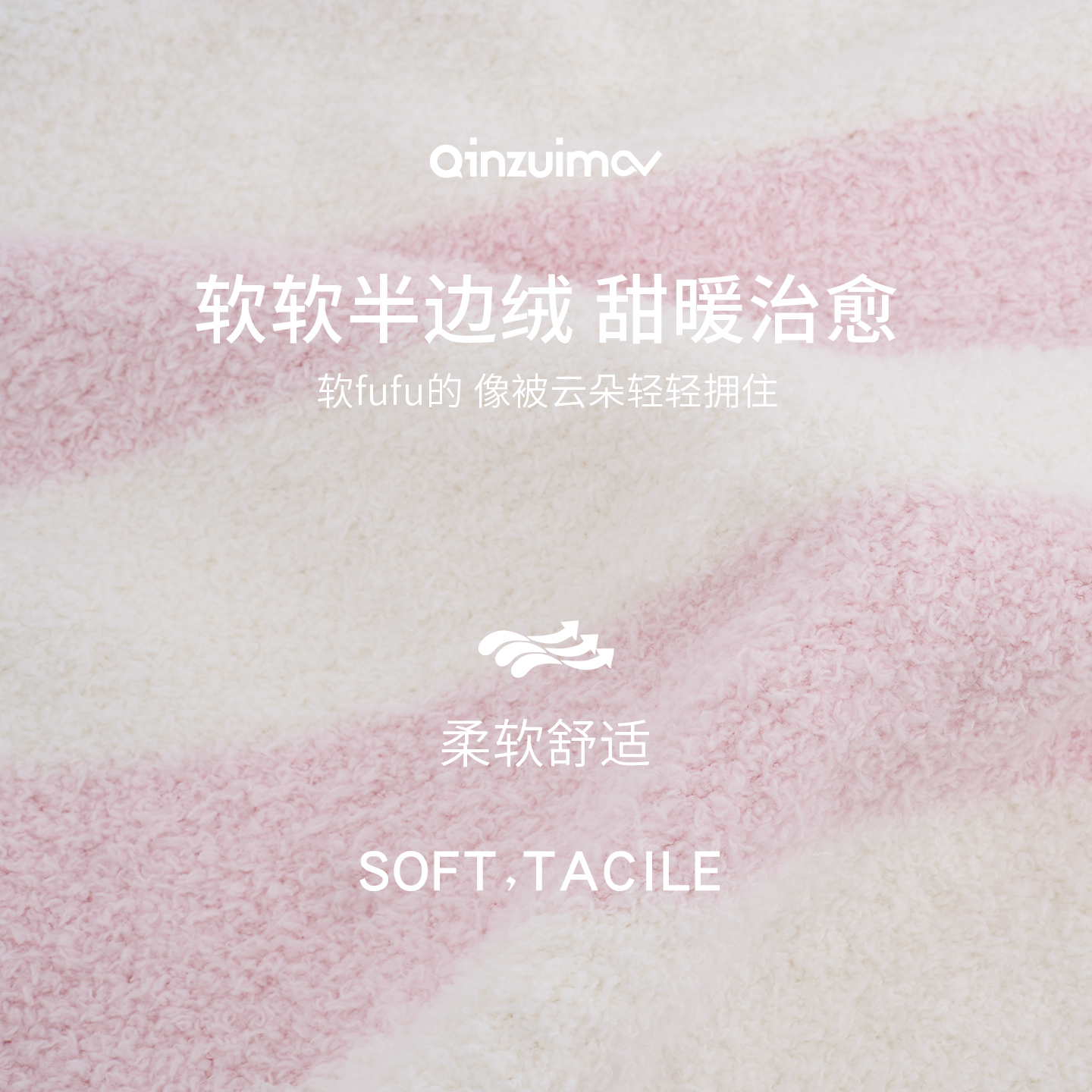 秋冬季 半边绒可外穿连帽少女可爱睡衣家居服套装 粉红豹 亲嘴猫