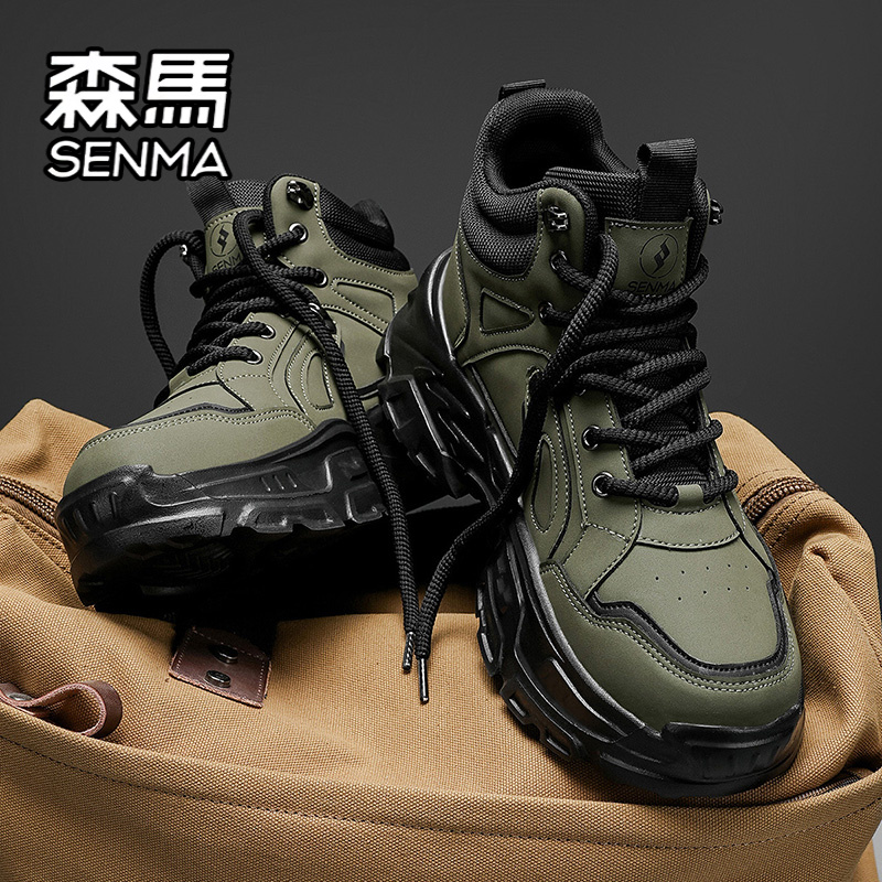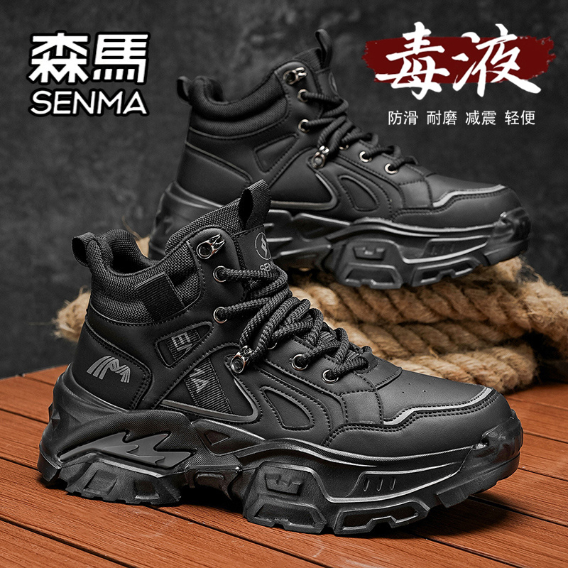 高帮厚底真皮户外工装 秋季 骆驼大黄靴马丁靴男款 靴 王俊凯同款