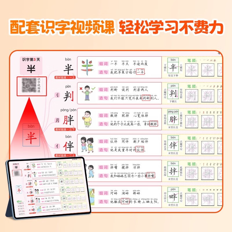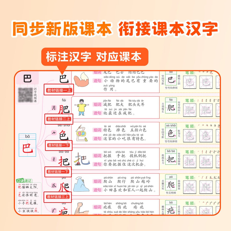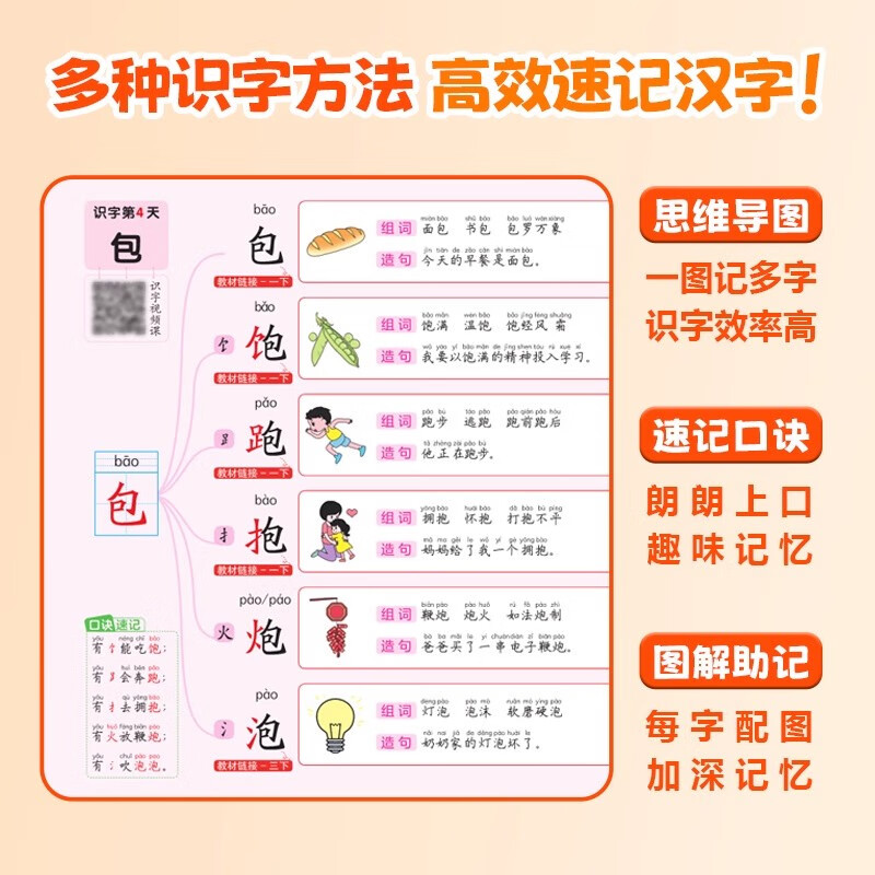 汉知简思维导图识字写字一本通 6年级认识汉字思维导图快速记汉字幼儿认字卡片练习册识字大王造句学前神器