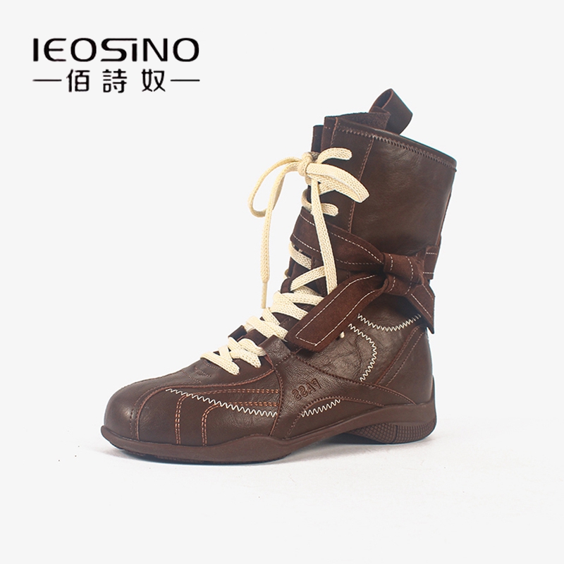 佰诗奴真皮复古拳击靴女户外猎装 靴舒适百搭西部靴女中筒马丁靴女