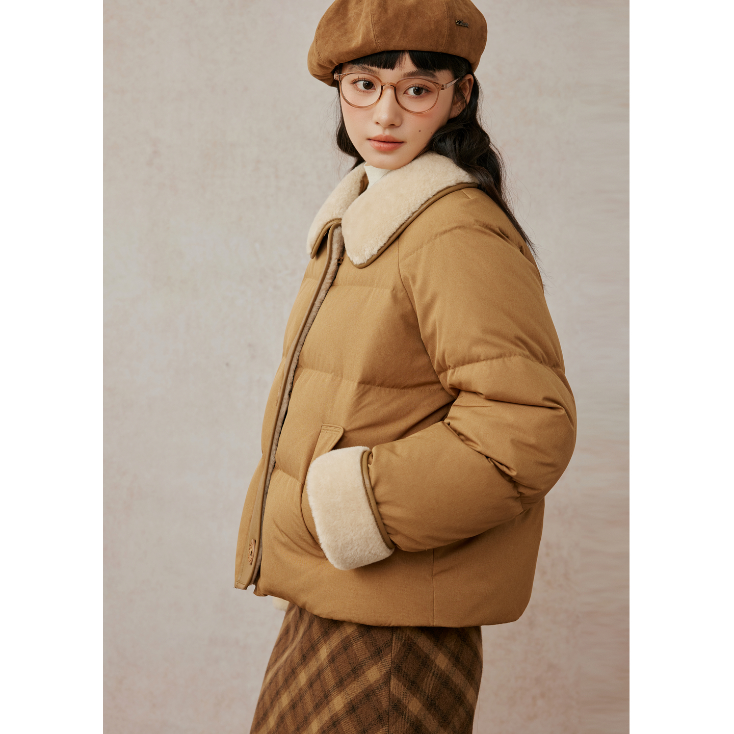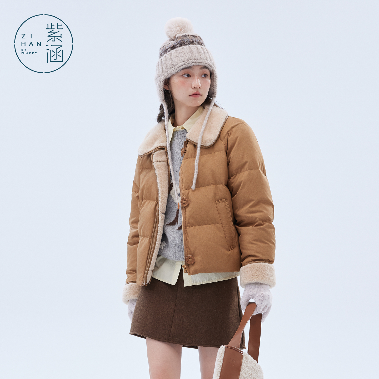 雪中飞2025冬新款 马卡龙色连帽面包服羽绒服廓形显瘦保暖 短款