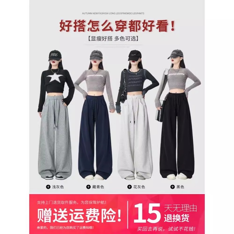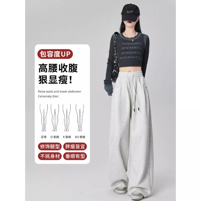 直筒阔腿大码 高腰显瘦宽松休闲垂感卫裤 女春秋2025新款 灰色运动裤