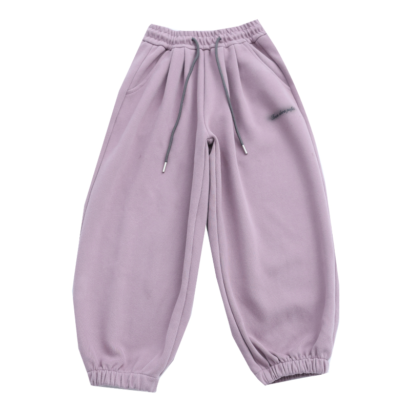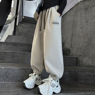 加绒街舞穿搭褶皱宽松休闲长裤 女秋冬季 子 灰色运动卫裤 自然涩美式