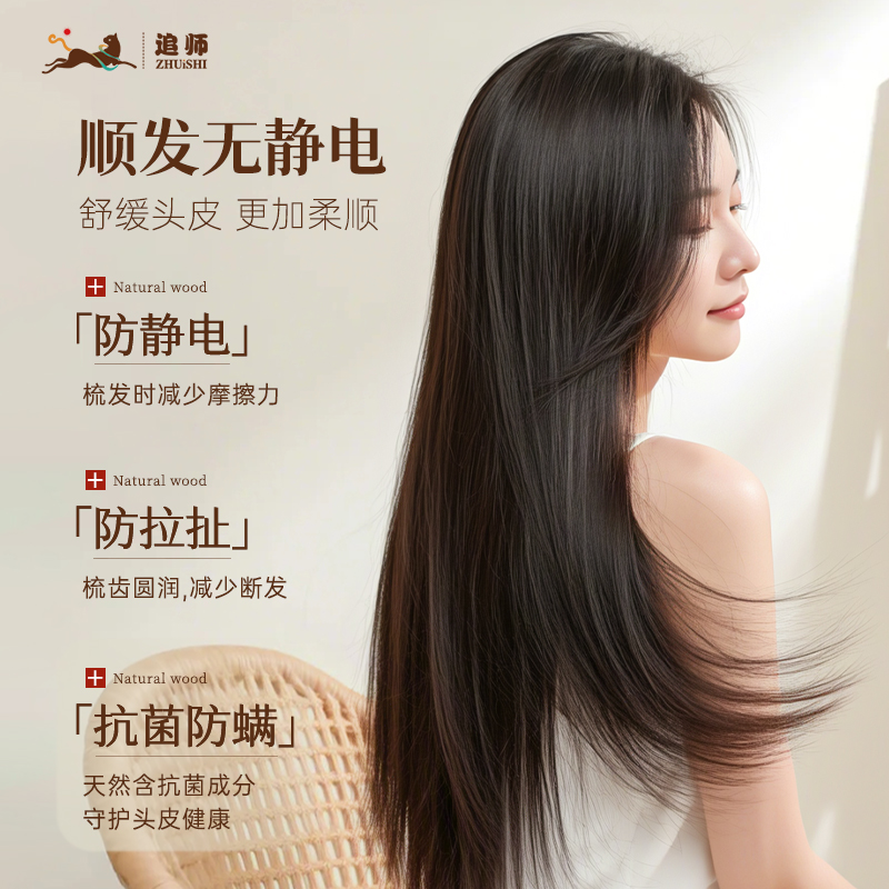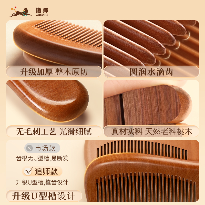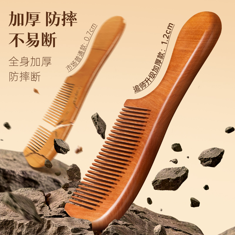 追师桃木梳子家用防静电檀木便携随身养生梳按摩男士 女士长发专用
