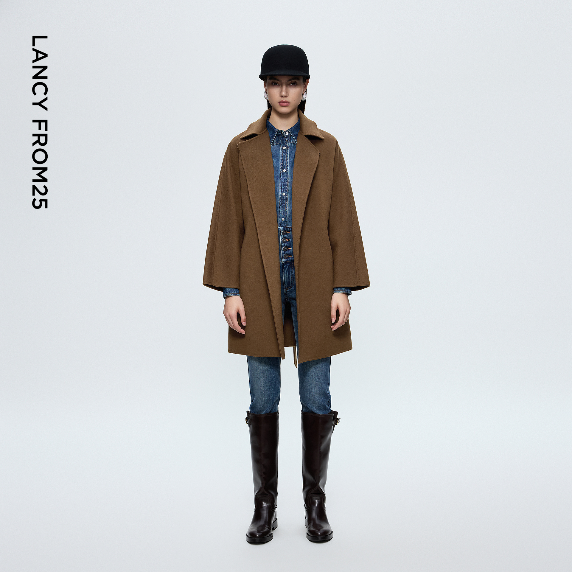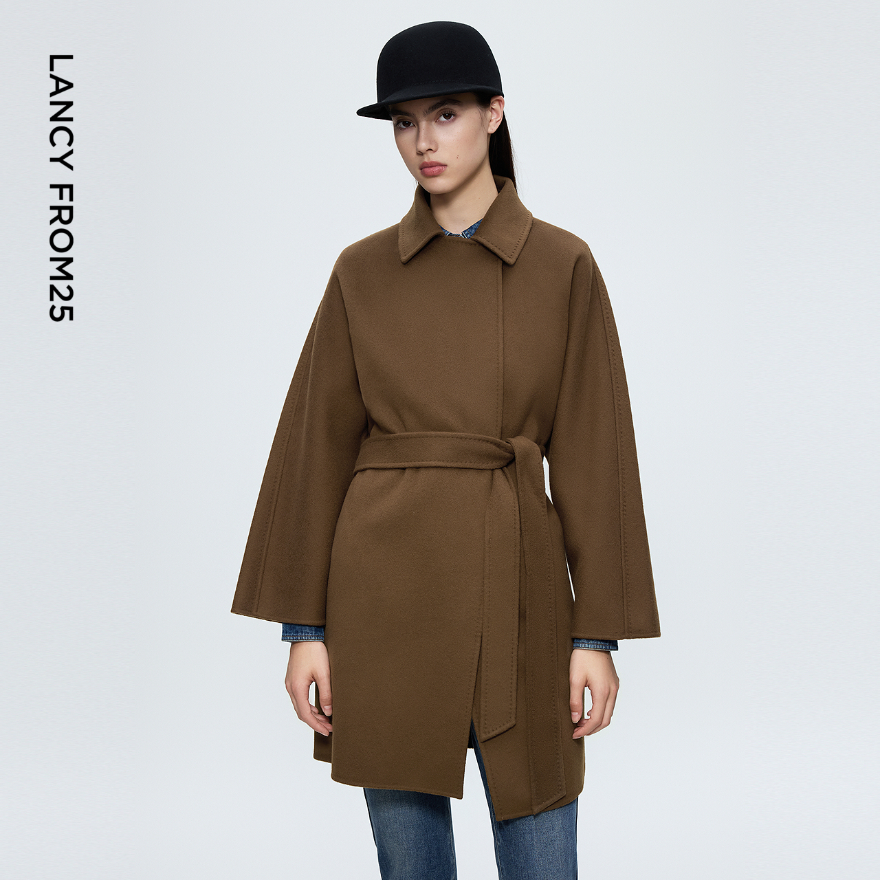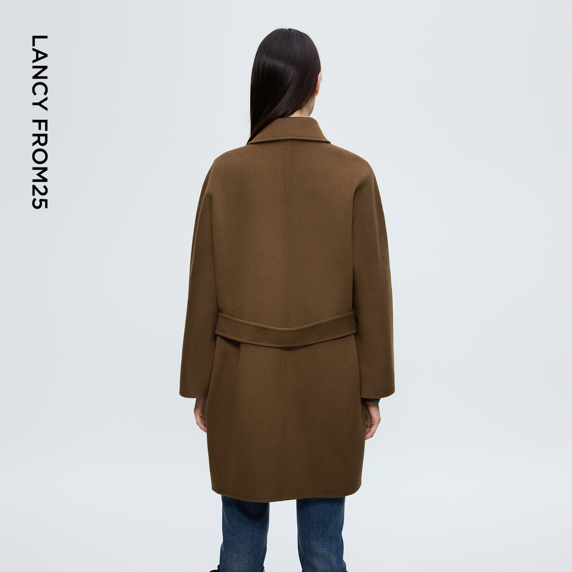 朗姿纯羊毛复古翻领双面呢毛呢外套气质通勤风大衣2025年冬季 新款