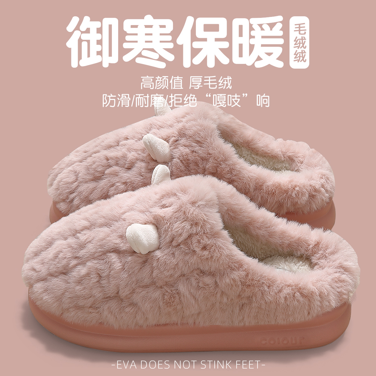 家居室内家用冬天厚底加绒棉拖女款 秋冬季 女士2025新款 毛绒棉拖鞋