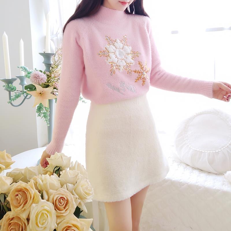 森马毛衣女冬季 慵懒风温柔甜美上衣 oversize小狗提花圆领软糯毛衫