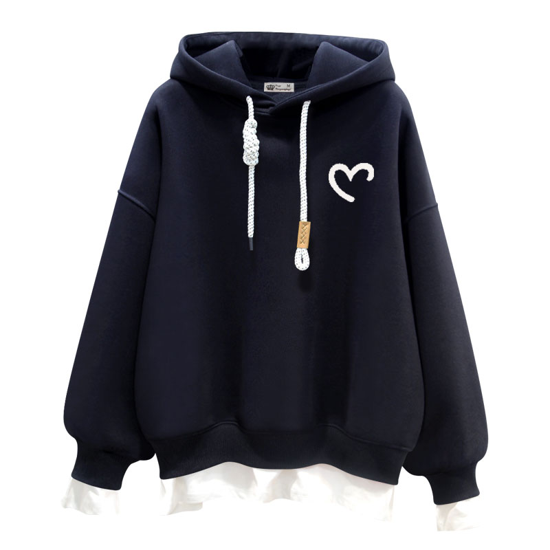 半小爱心假两件上衣外套 薄款 黑色连帽卫衣女加绒2025新款 春秋冬季