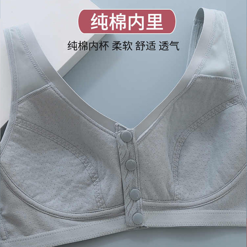 中年妈妈内衣无钢圈胸罩老年人防下垂收副乳大码 防走光 前扣背心式
