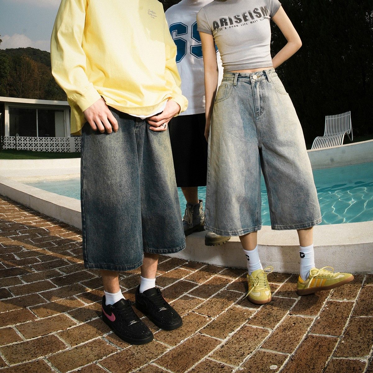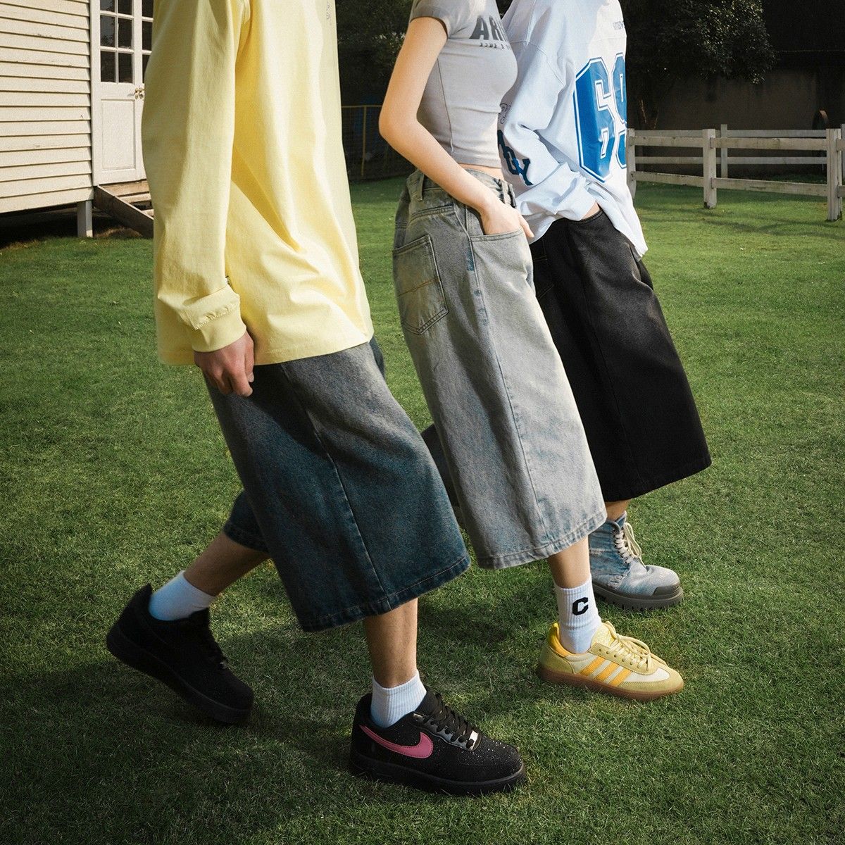 高腰宽松休闲a字显瘦阔腿热裤 2025年新款 梨型黑色 女夏季 牛仔短裤