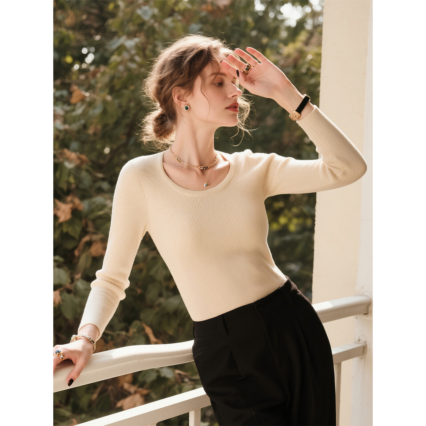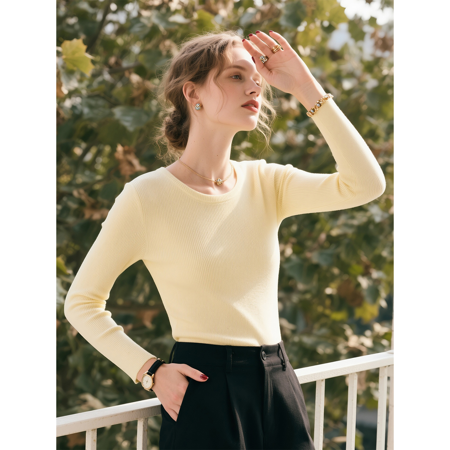 舒适软糯气质显瘦毛衣上衣 女2025年秋冬新款 黑色圆领长袖 针织衫