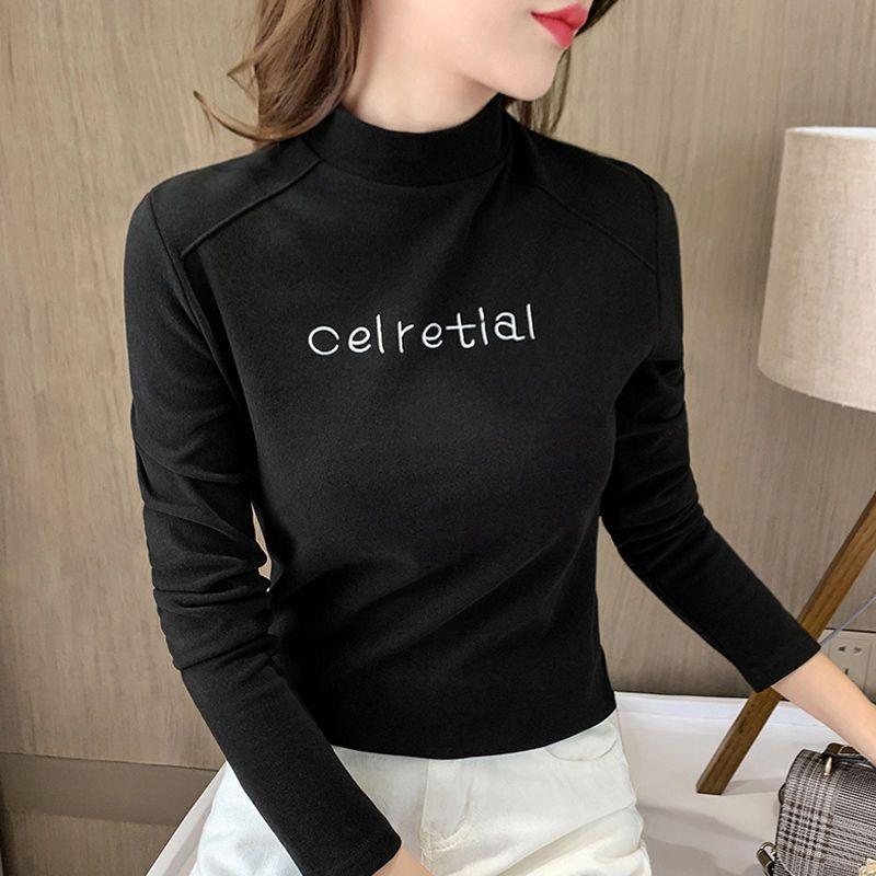 T恤上衣1018r 内搭可外穿印花长袖 半高领打底衫 女冬季
