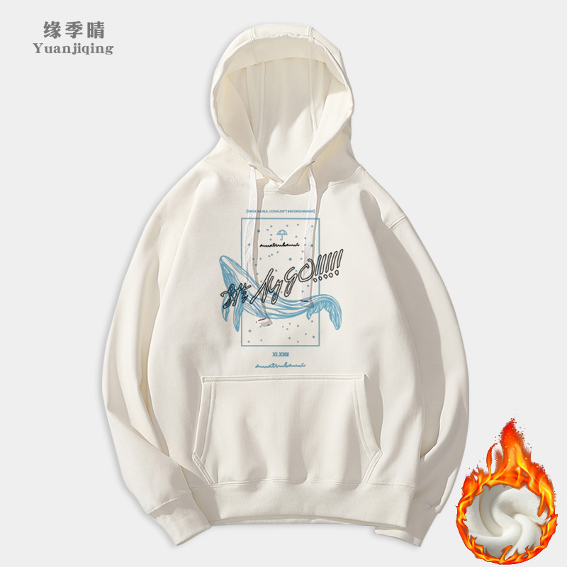 美式 复古潮牌加绒加厚连帽卫衣女秋冬oversize外套chic慵懒开衫