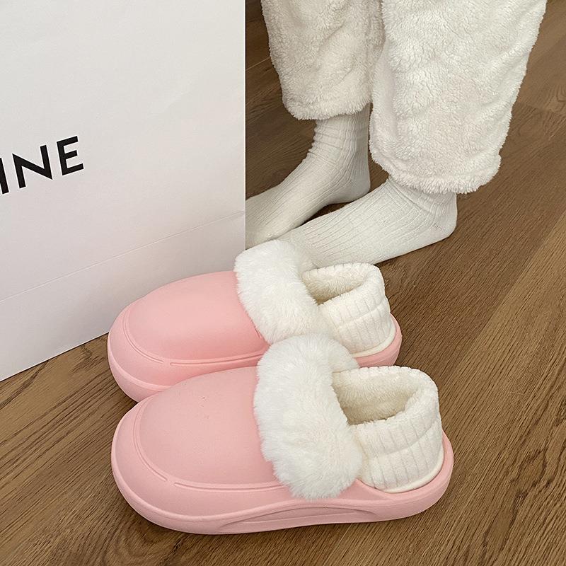 情侣外穿包跟毛毛棉拖鞋 可拆卸厚底保暖秋冬季 女2025新款 防水棉鞋