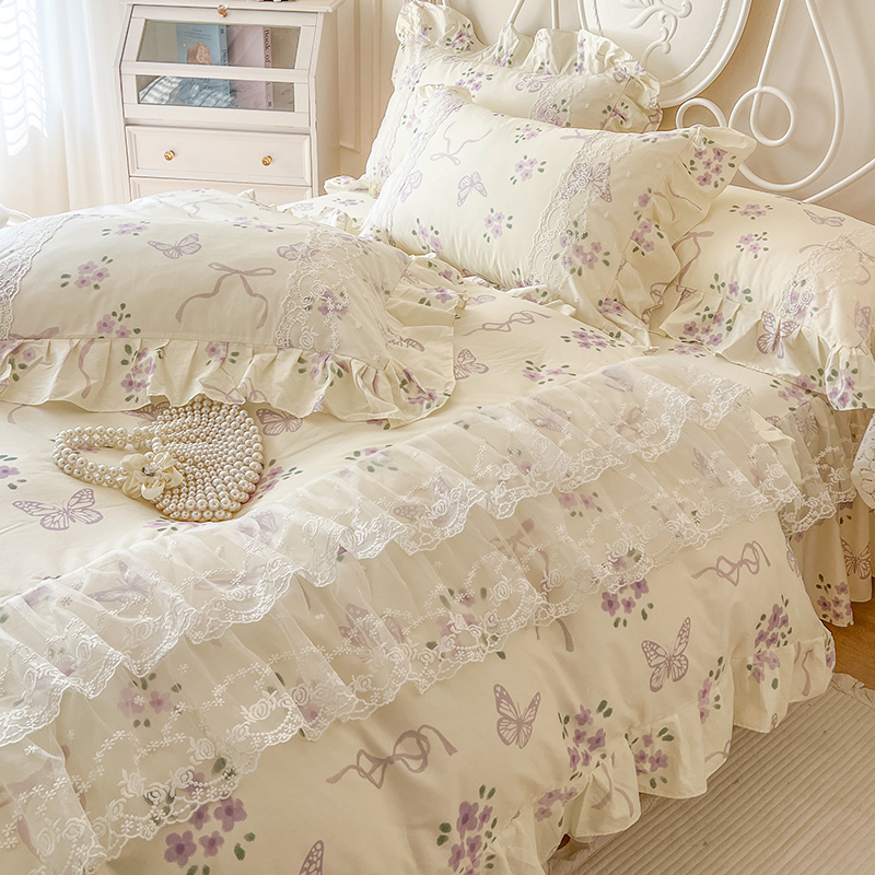 雅芳婷全棉四件套床笠款 小清新印花超柔纯棉抑菌多用被套床品套件