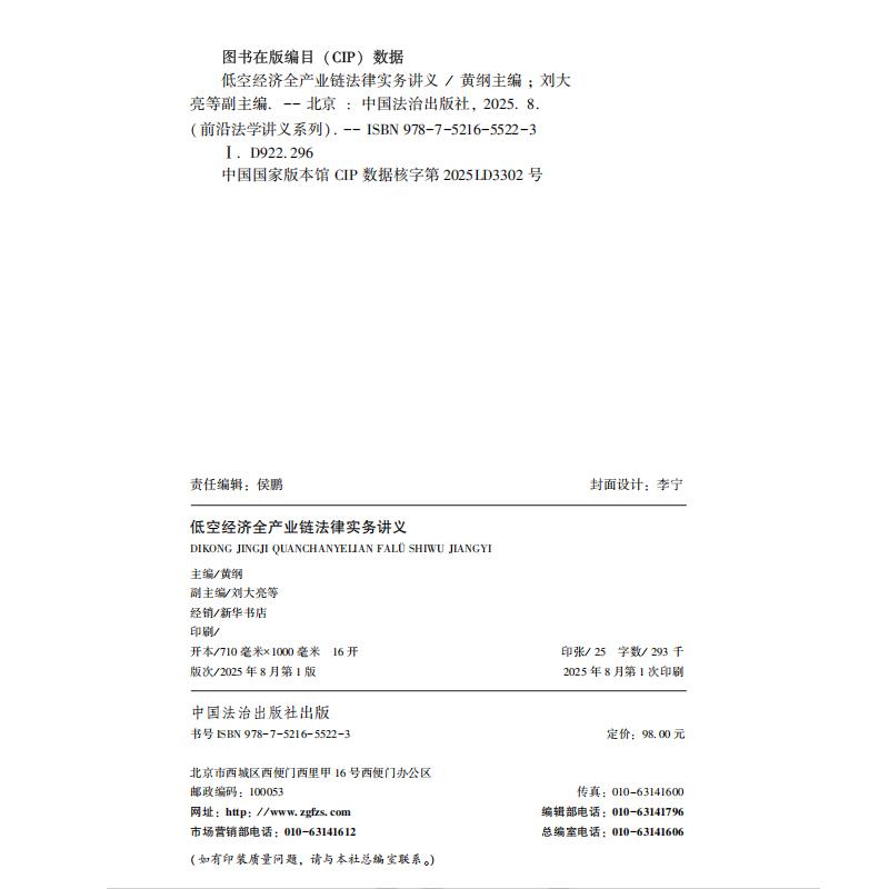 2025新书 中国法治出版 低空经济全产业链法律实务讲义 前沿法学讲义系列 社9787521655223 黄纲 正版