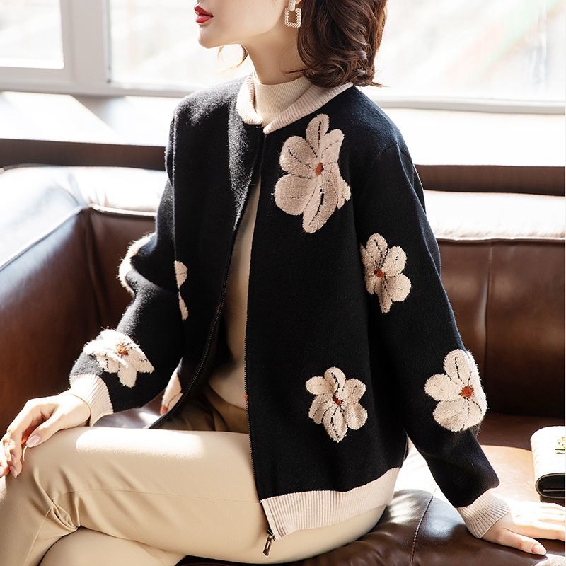 纯棉春秋外套纯色百搭圆领毛衣针织衫 宽松针织开衫 潮 女装 2025新款