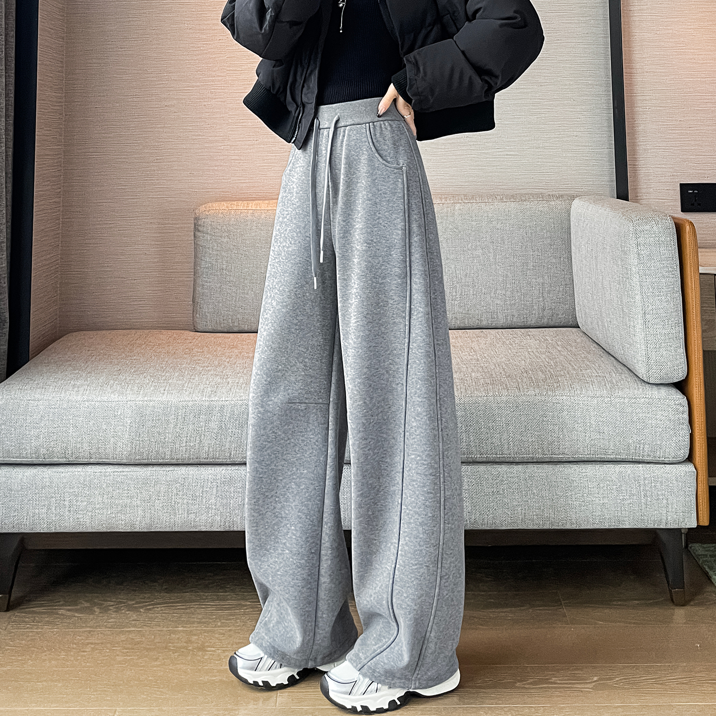 高级宽松bf慵懒垂感直筒加绒休闲阔腿裤 2025新款 子女春秋季 糯米裤