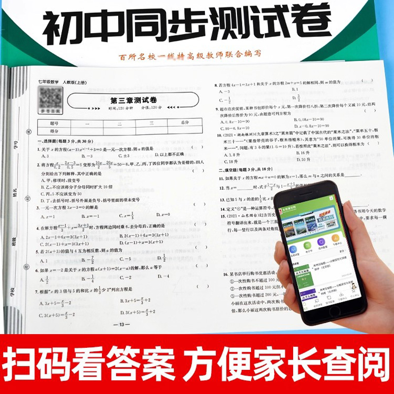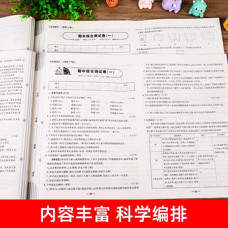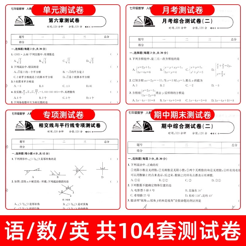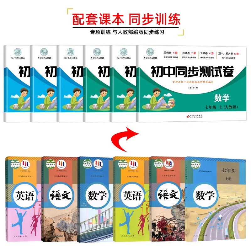 初一上册下册全套试卷同步练习册必刷题7七年级测试卷数学人教版 初中道德法治英语生物地理历史小四门训练考期末卷子配套尖子生