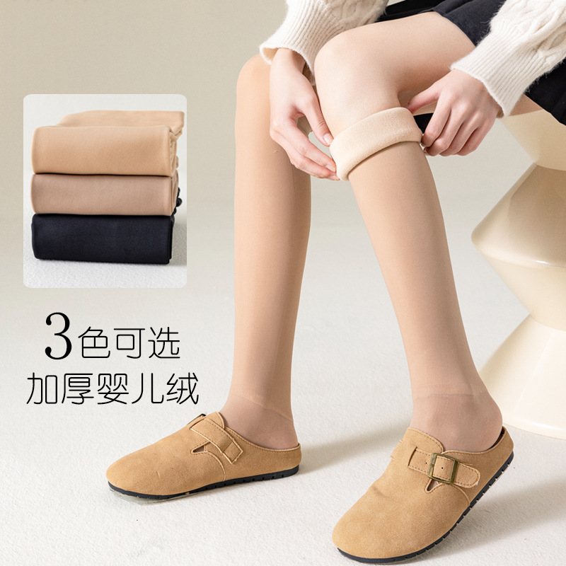 长筒靴袜子女搭配靴子小腿堆堆过膝袜春秋内搭白色大腿长筒袜羊毛