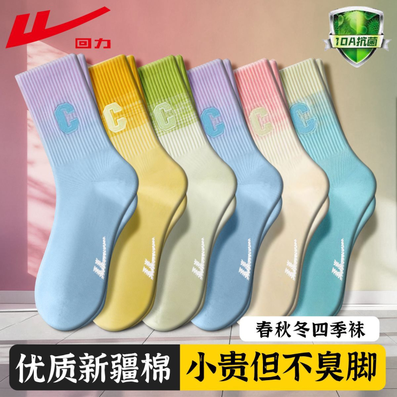 7A抗菌防臭秋冬季 爆款 运动中筒长袜 秋2025新款 回力多巴胺袜子女款