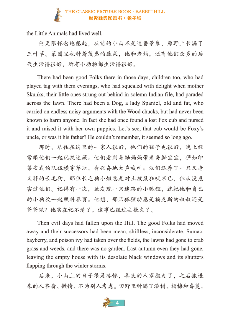 儿童文学小说经典 外国名著 荐读物 兔子坡彩图非注音版 12周岁小学生课外阅读书籍老师推 英语早教启蒙图书 中英双语对照