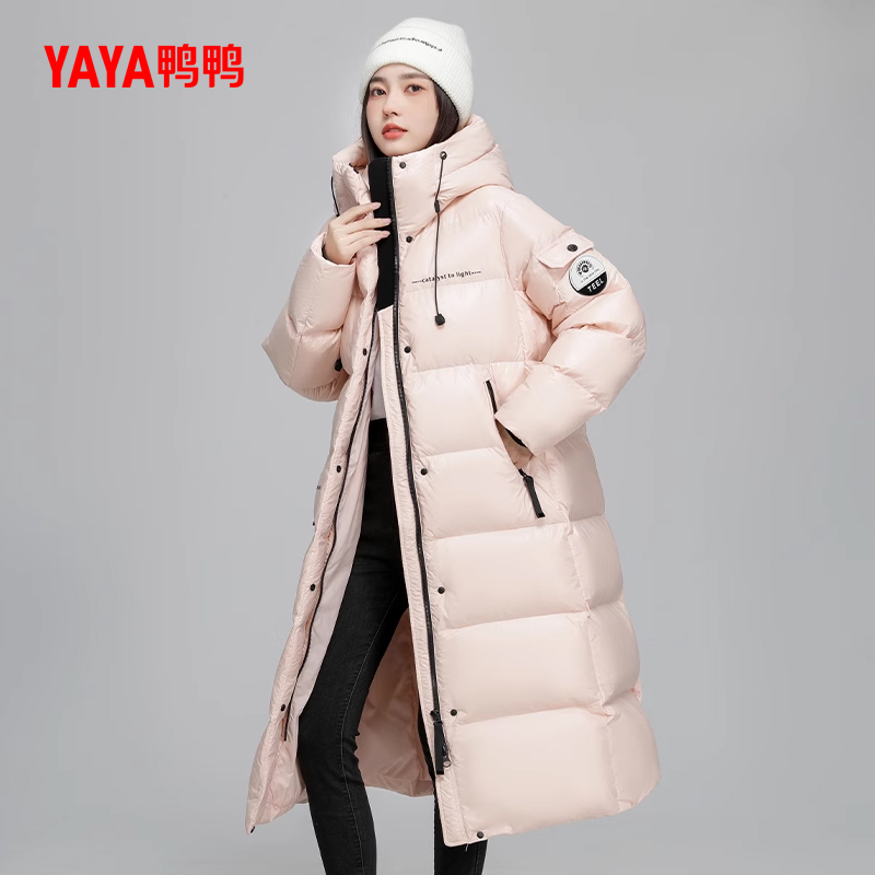 防泼水鸭绒保暖外套 连帽羽绒服女士2025冬季 安踏面包羽绒 中长款