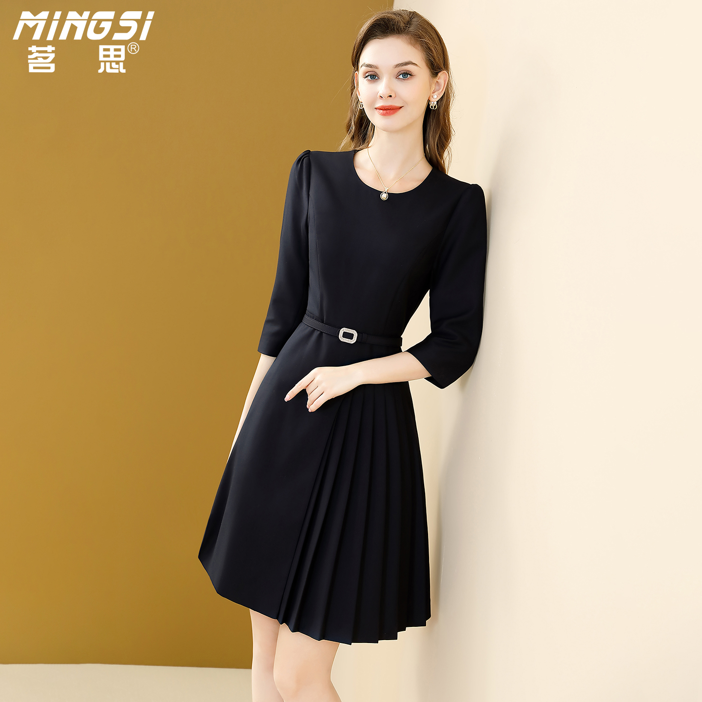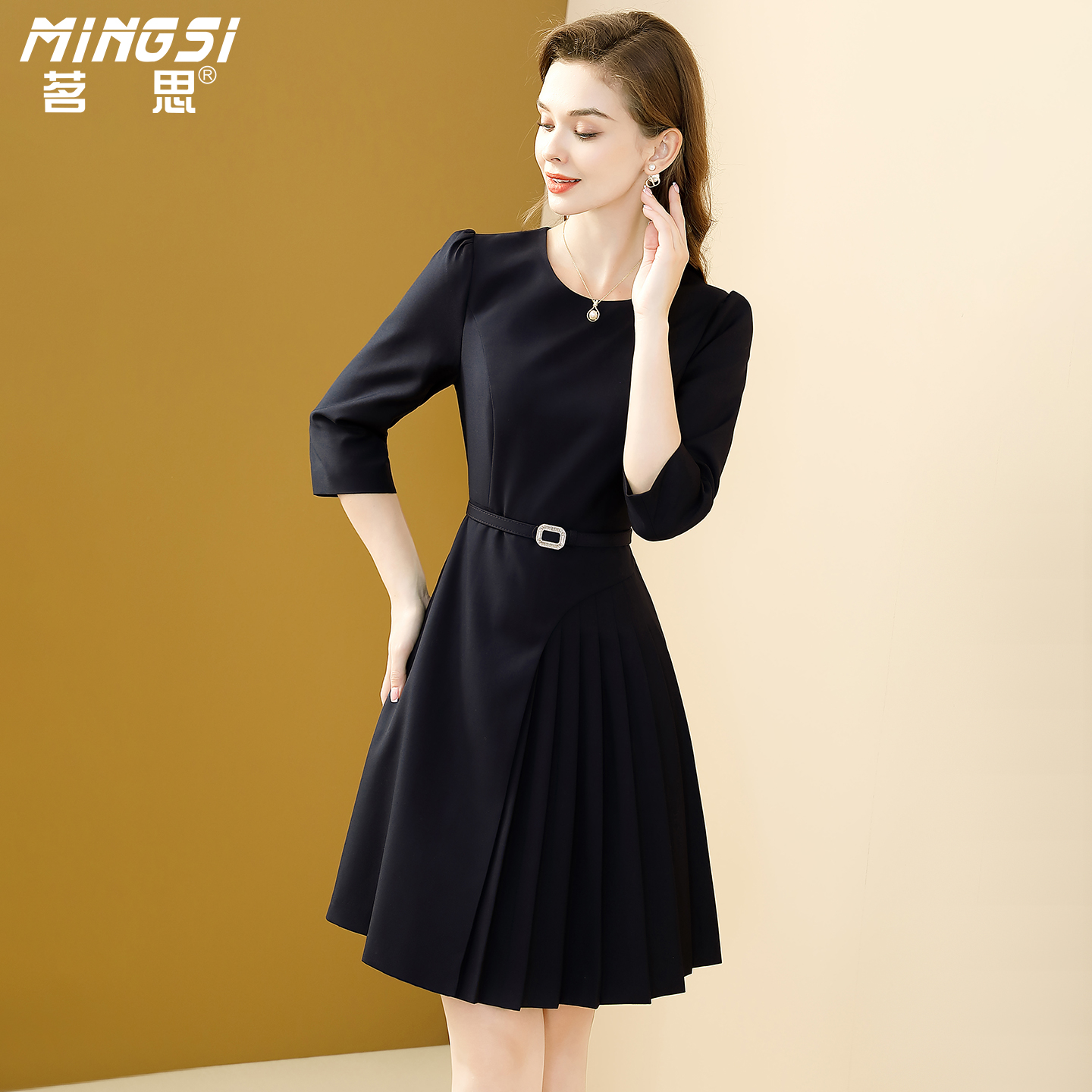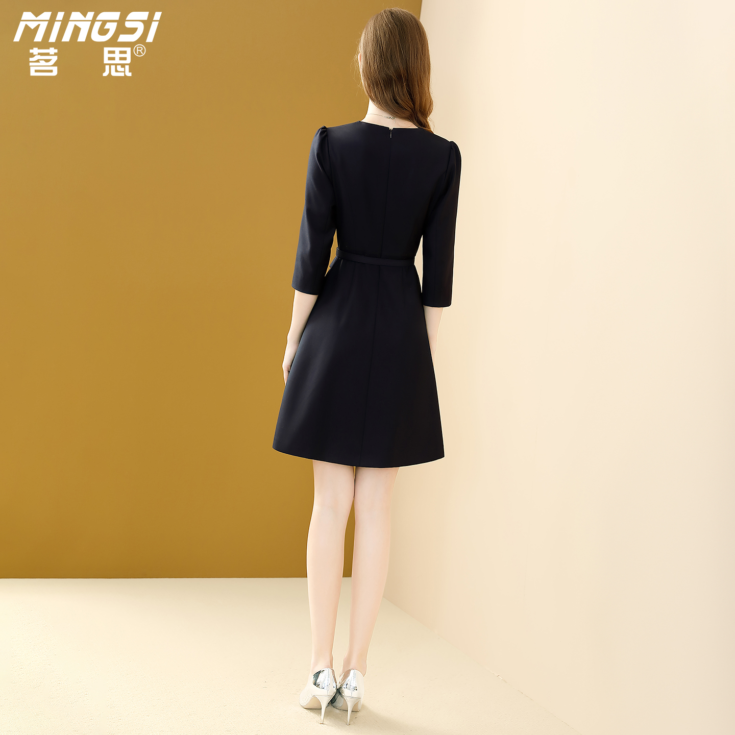 宽松显瘦裙子 小个子钉珠长袖 茗思高级感撞色连衣裙女2025秋季 新款