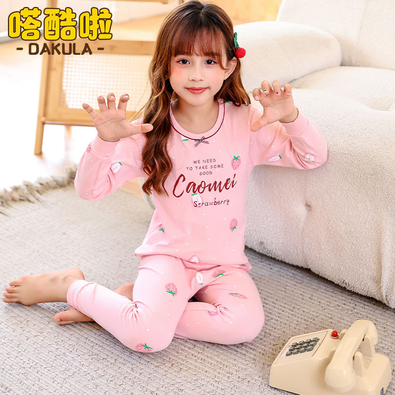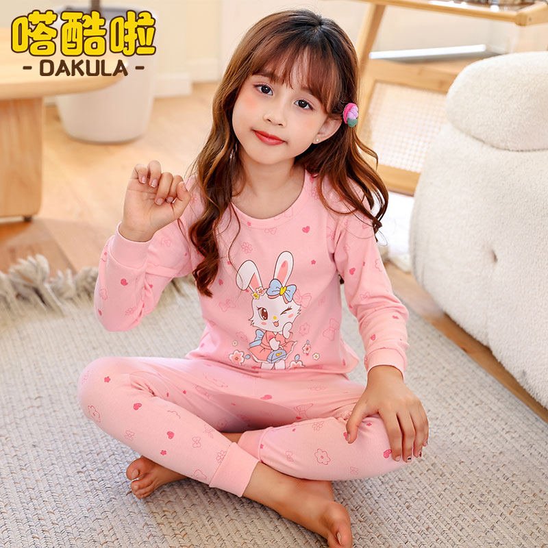 棉毛内衣纯棉 女宝宝儿童睡衣打底衫 女孩春秋内衣套装 女童秋衣秋裤