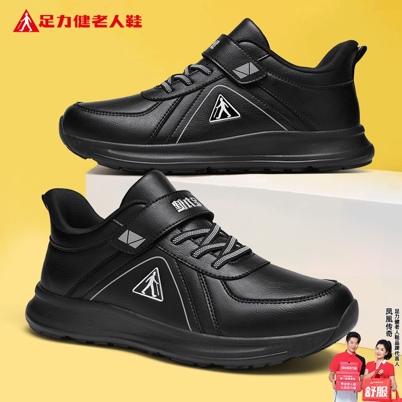皮面健步软底魔术贴女鞋 中年妈妈秋季 官方旗舰店正品 足力健老人鞋