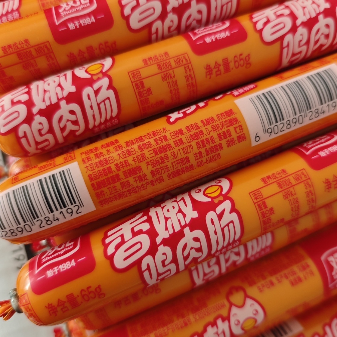双汇香嫩鸡肉肠65g大支即食火腿肠香肠烧烤肠淀粉肠整箱批发尝鲜