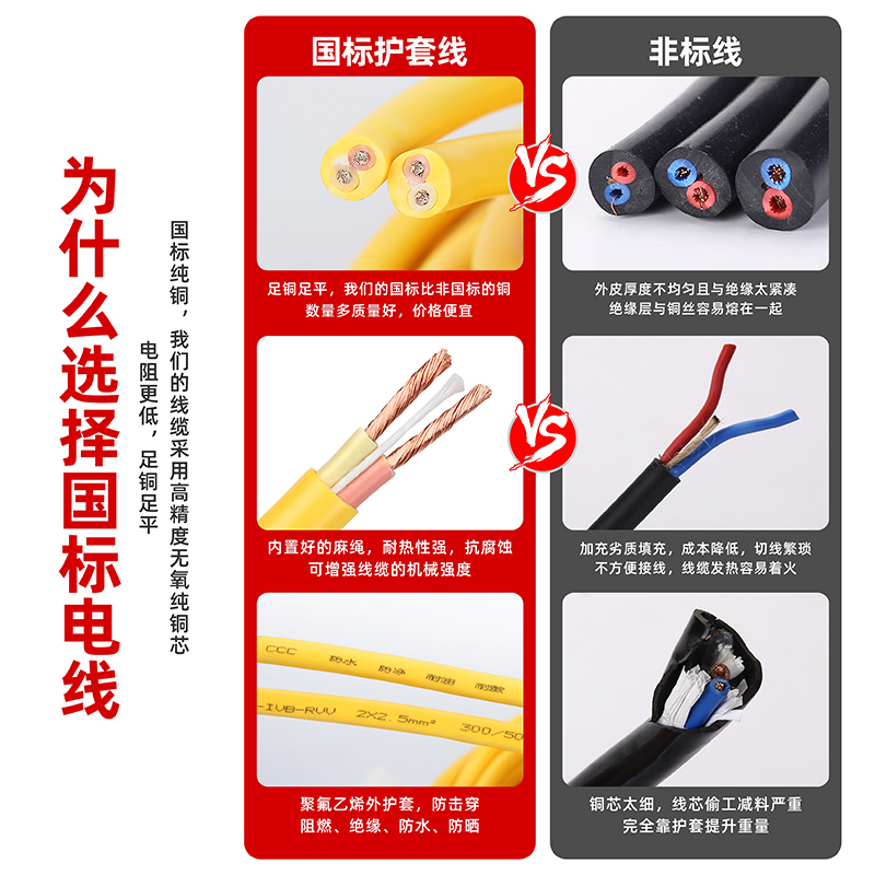 电缆线2芯1.5.2.5.4平方家用电线插线板牛筋线户外防水护套线软线