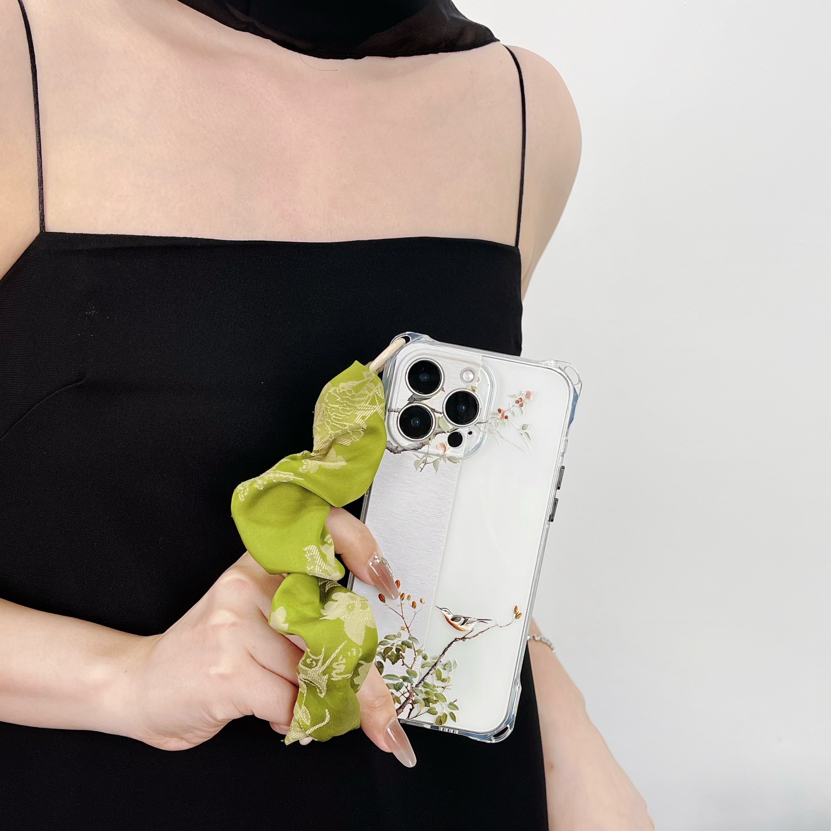 新中式 手提带挂脖四角开孔复古 国风花鸟挂绳手机壳适用于苹果iPhone16promax华为oppo荣耀vivo小米斜挎侧背式