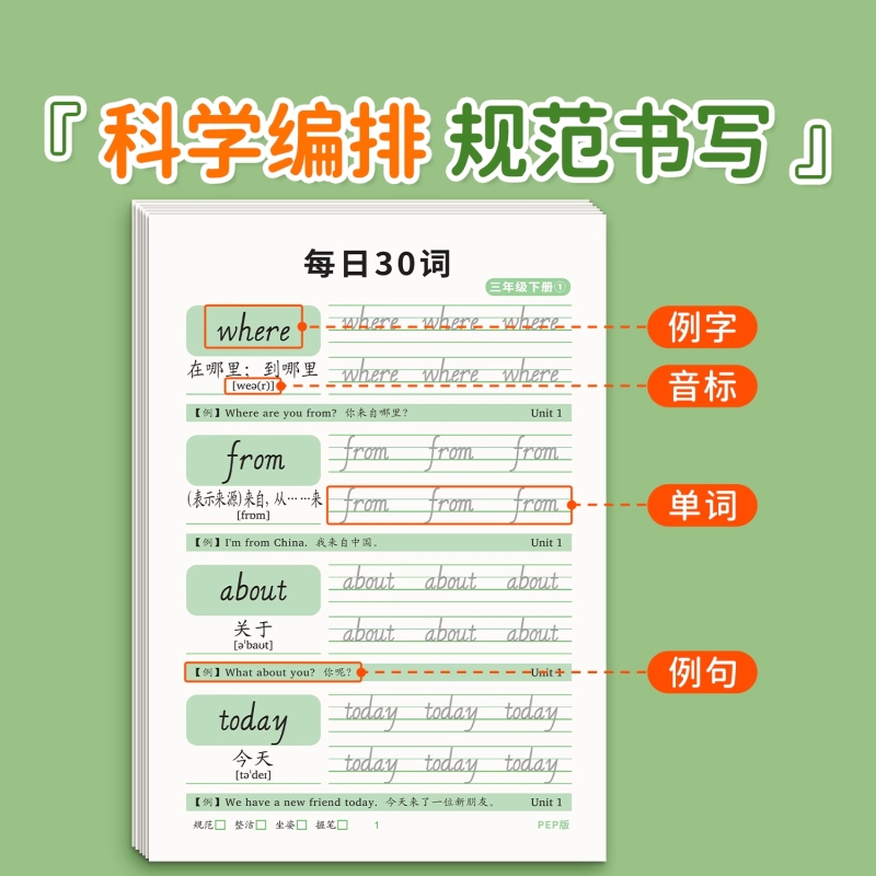 2025新版 教材同步四五六年级手写体意大利斜体英文练字本描红字母单词每日30词 英语字帖三年级上册下册练字帖小学生专用pep人教版