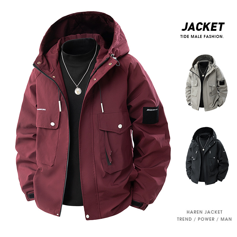 外套男士 冲锋衣式 秋季 新款 夹克 半墨大码 防风户外三合一工装 男装
